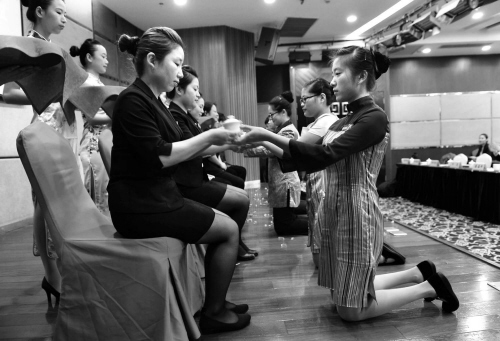 昨天下午,嘉興市欣禾職教集團?聚酒店管理學院揭牌成立,嘉職院2012級酒店管理專業(yè)的12名學生參加師帶徒結(jié)對儀式,學生們向服務(wù)行業(yè)的前輩敬茶跪拜行拜師禮。據(jù)悉,這是欣禾職教集團打造的第三個產(chǎn)學共同體。