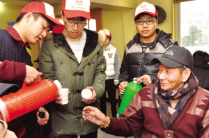 ????昨天下午,南湖區(qū)解放街道團(tuán)工委、菜花涇社區(qū)團(tuán)支部和嘉職院農(nóng)建分院愛知舟服務(wù)隊(duì)的科普志愿者們聯(lián)合開展“一杯暖姜湯、溫暖萬人心”活動(dòng),除了在小區(qū)大門口擺放了服務(wù)點(diǎn)外,還將姜湯送到了社區(qū)居家養(yǎng)老服務(wù)中心的老人手中。