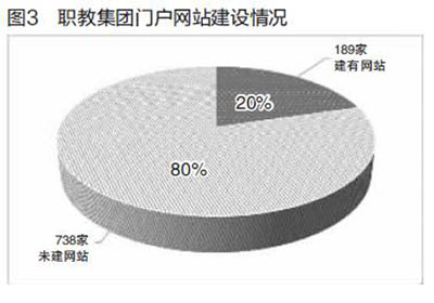 截至2013年底,在全部927個職教集團中,建有門戶網(wǎng)站的職教集團僅189個,占職教集團總數(shù)的20.39%(見圖3)。