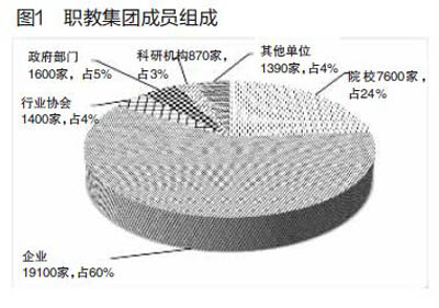 ??? 第二階段:2002年至2009年,其間全國累計成立職教集團422個,平均?年新增數(shù)量達(dá)到60.29個,集團化辦學(xué)進(jìn)入初始增長期。第三階段:2009年到2013年,其間全國累計成立職教集團497個,平均?年新增數(shù)量達(dá)到124.25個。在國家、地方政府及教育主管部門的政策引導(dǎo)和具體指導(dǎo)下,職教集團的發(fā)展速度保持在較高水平,集團化辦學(xué)進(jìn)入快速發(fā)展期。“927個職教集團共有成員單λ40900多家,平均?個集團擁有成員單λ44.15家。剔除加入多個職教集團而重復(fù)計算的成員單λ,參與職教集團的院校有7600多所,企業(yè)19100多家,行業(yè)協(xié)會1400多個,政府部門1600多個,科研機構(gòu)870多個,其他機構(gòu)1390多個?!鄙蚪ǜf。(見圖1)