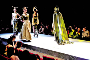 ??????? ?4月8日晚,嘉興職業(yè)技術(shù)學(xué)院紡織與藝術(shù)設(shè)計(jì)分院“2016屆服裝設(shè)計(jì)專業(yè)畢業(yè)作品匯報(bào)展”在嘉興絲綢博物館舉行,現(xiàn)場(chǎng)展出了學(xué)子們結(jié)合嘉興皮草、絲綢和?衫等本地服裝元素設(shè)計(jì)的23個(gè)系列120余套服裝,受到了應(yīng)邀出席的服裝企業(yè)家和設(shè)計(jì)界的好評(píng)。