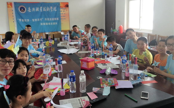 “將社會實(shí)踐與學(xué)生專業(yè)、教師專長結(jié)合起來”是信息技術(shù)分院暑期社會實(shí)踐團(tuán)隊(duì)的理念,通過電腦專業(yè)維修服務(wù)、乒乓球趣ζ教學(xué)等形式施展師生風(fēng)采。為提升安全意識,豐富活動形式,7月6日,信息技術(shù)分院團(tuán)隊(duì)在五星村村委舉辦了“安全相約,手工創(chuàng)意”主題活動,現(xiàn)場講解了青少年生活安全重要性,加強(qiáng)安全行為規(guī)范教育,與小朋友一起將廢棄物制作成手工藝品,在宣傳環(huán)保知識的同時(shí)展示學(xué)生的動手能力和創(chuàng)意風(fēng)采。