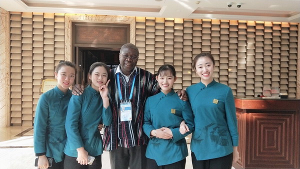 金璐璐說(shuō)起一個(gè)細(xì)節(jié),非洲聯(lián)盟副主席托馬斯來(lái)餐廳用餐時(shí),她起初不知道他的身份,就覺得這位貴賓與他的太太十分熱情、有禮貌,見到每一個(gè)服務(wù)員都開朗地笑著,向大家問(wèn)好,走后還對(duì)每一個(gè)人鞠躬、道謝。后來(lái)他對(duì)我們說(shuō),中國(guó)的女孩子都愛笑,很友好,讓他這次的中國(guó)之旅更添開心。