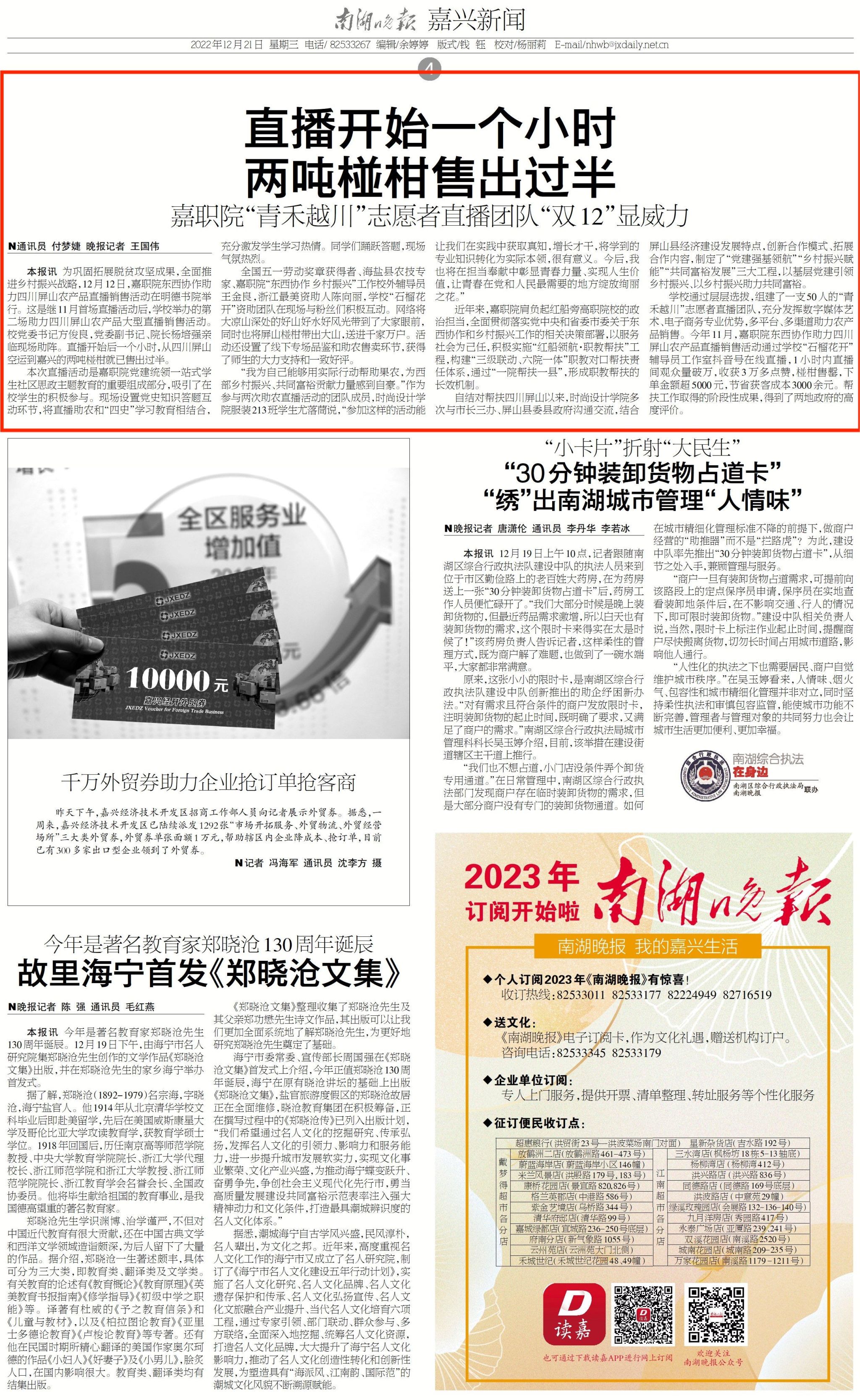 消息來源:《南湖晚報(bào)》2022年12月21日04版