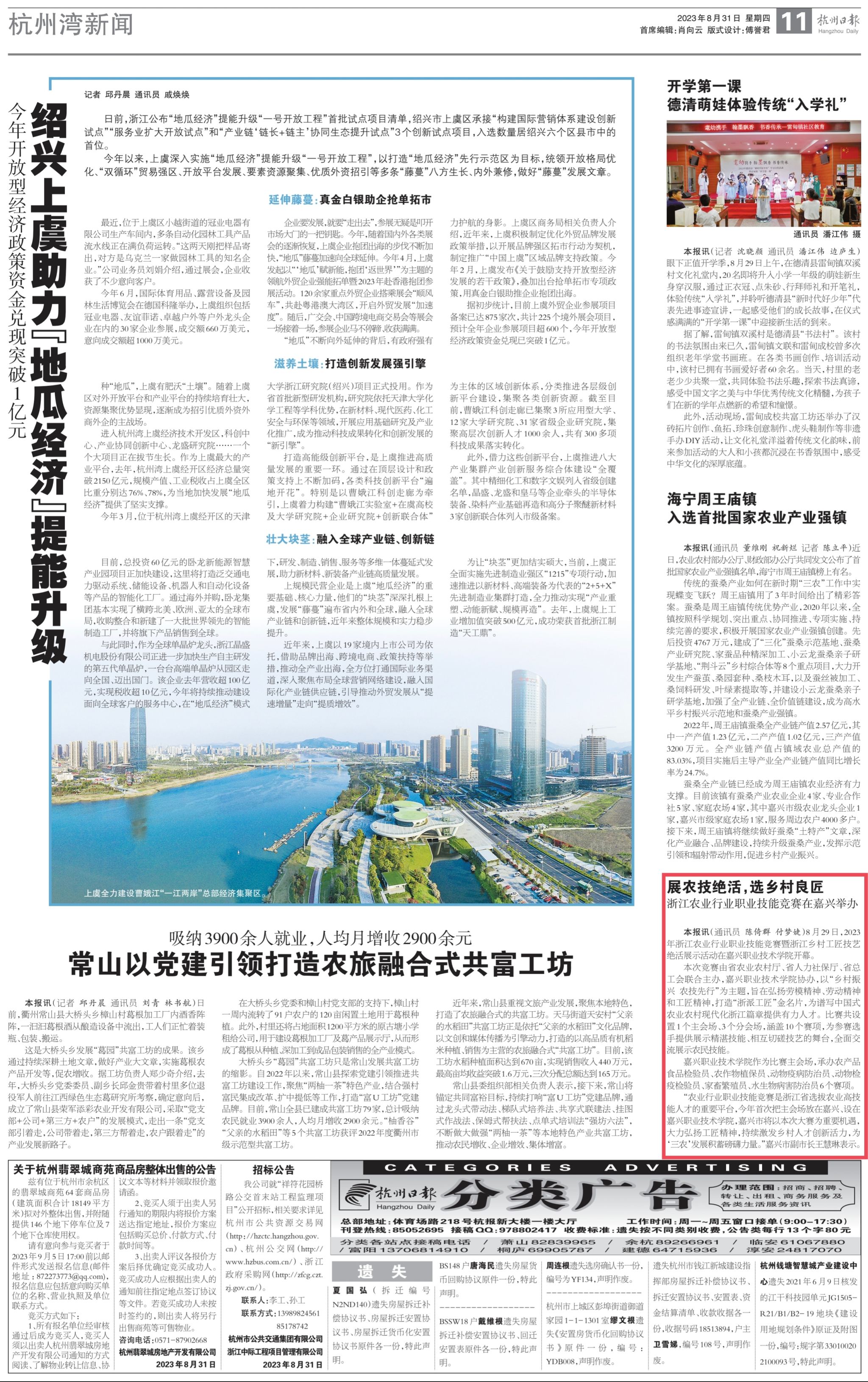消息來源:《杭州日?qǐng)?bào)》2023年8月31日11版