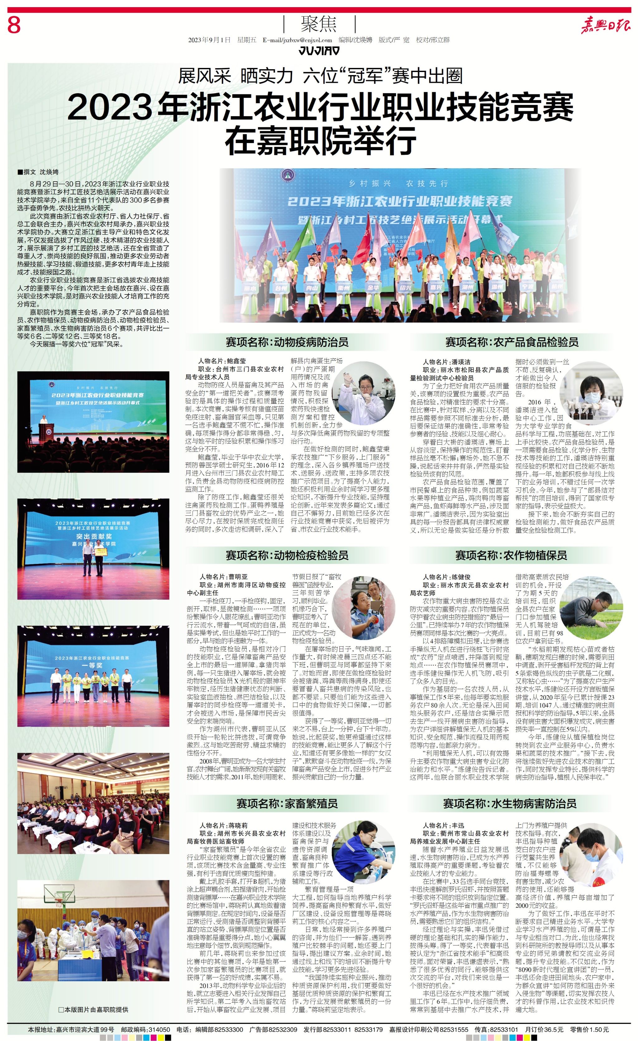 【嘉興日報】展風采 曬實力 六位“冠軍”賽中出圈 2023年浙江農(nóng)業(yè)行業(yè)職業(yè)技能競賽在嘉職院舉行