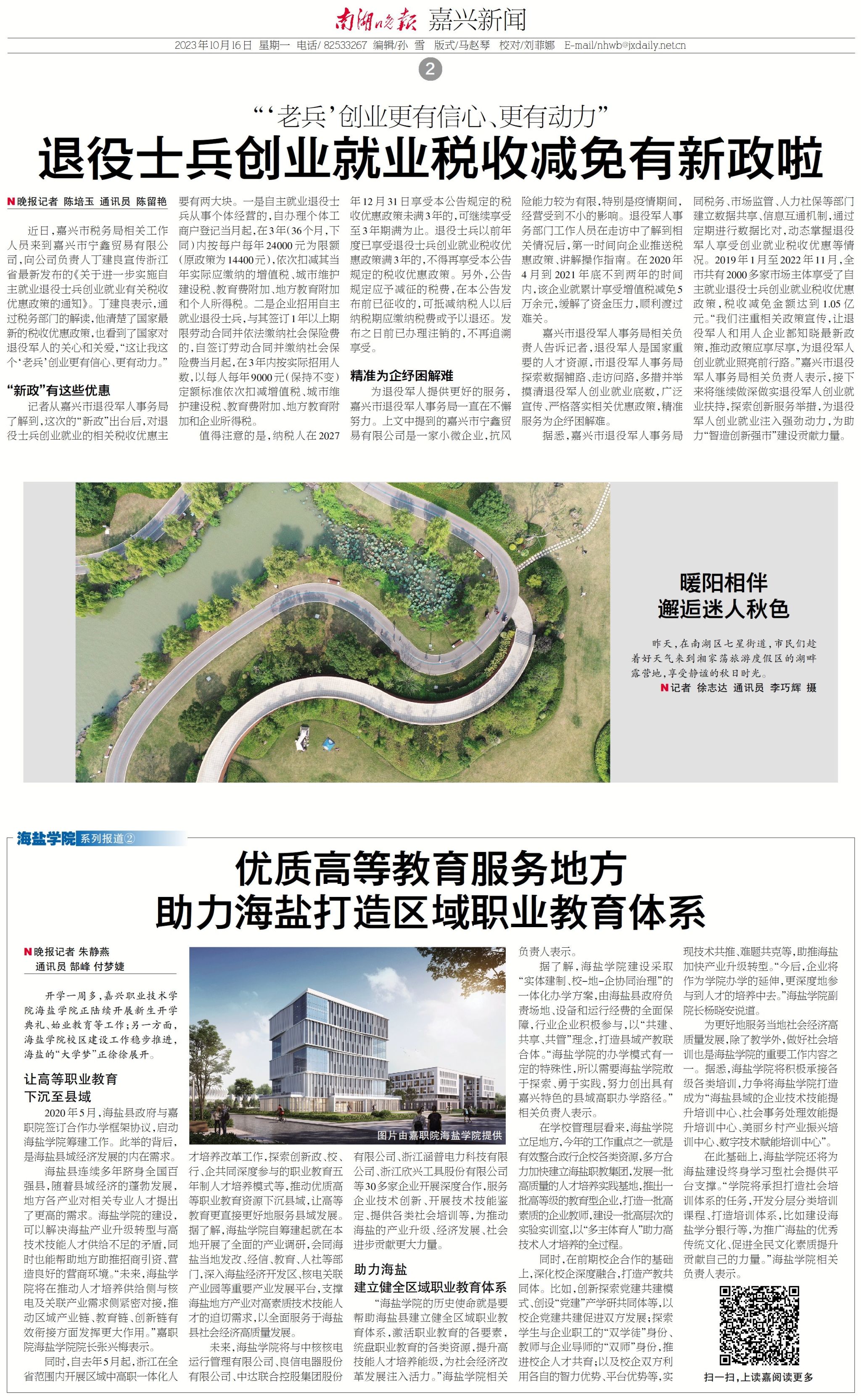 【南湖晚報】優(yōu)質高等教育服務地方,助力海鹽打造區(qū)域職業(yè)教育體系