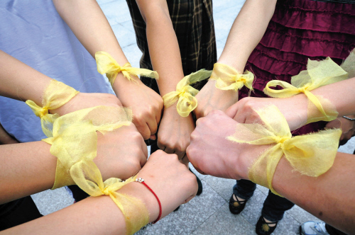 昨天上午,嘉興職業(yè)技術(shù)學(xué)院國商062班的同學(xué)開展了“黃絲帶情牽四川”活動,同學(xué)們系上了手工制作的黃絲帶,共同為四川災(zāi)區(qū)祈福。