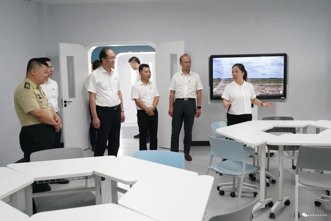 于昕一行實(shí)地考察學(xué)校教學(xué)環(huán)境,深入了解學(xué)生學(xué)習(xí)生活條件,在數(shù)字化教學(xué)空間,聽(tīng)取學(xué)校數(shù)字校園、智慧校園基礎(chǔ)設(shè)施建設(shè)等工作匯報(bào);在AHK中德跨企業(yè)培訓(xùn)中心等地,詳細(xì)了解學(xué)校產(chǎn)教融合校企合作、學(xué)生就業(yè)方向及薪酬待遇等情況,對(duì)嘉職院近年來(lái)取得的辦學(xué)成績(jī)和育人成果給予充分肯定和高度評(píng)價(jià)。于昕指出,嘉職院在學(xué)校黨委的領(lǐng)導(dǎo)下,發(fā)生了翻天覆地的變化,令人耳目一新,真正實(shí)現(xiàn)了蝶變躍升、跨越發(fā)展。學(xué)校數(shù)字化改革成果顯著,校企合作、產(chǎn)教融合縱深推進(jìn),為區(qū)域經(jīng)濟(jì)社會(huì)高質(zhì)量發(fā)展培養(yǎng)了一大批高素質(zhì)技術(shù)技能人才、能工巧匠、大國(guó)工匠,為嘉興經(jīng)濟(jì)社會(huì)發(fā)展、產(chǎn)業(yè)轉(zhuǎn)型升級(jí)提供了有力支撐。