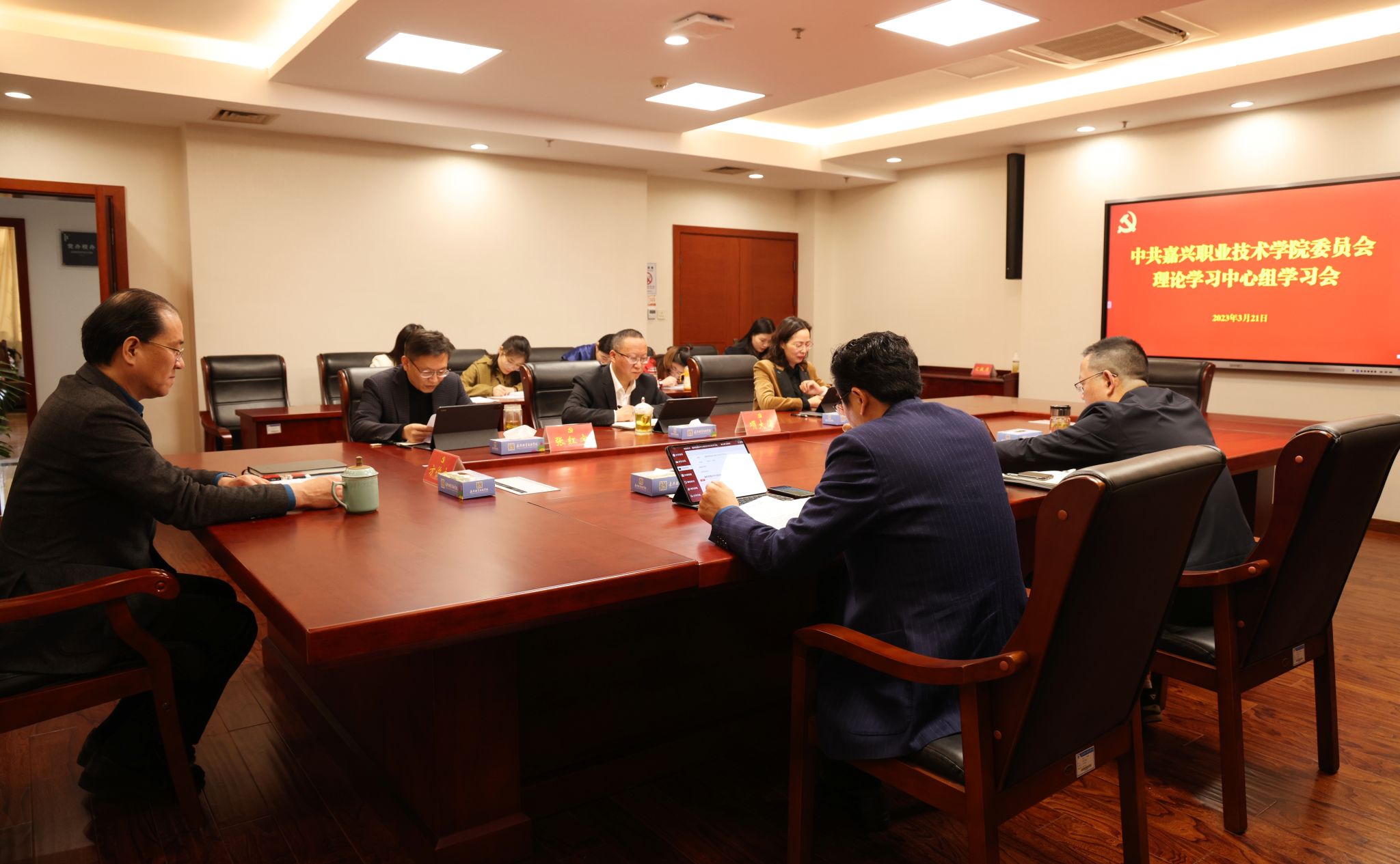 3月21日,嘉職院黨委理論學(xué)習(xí)中心組舉行學(xué)習(xí)貫徹2023年全國、省、市兩會精神專題學(xué)習(xí)會。黨委書記方俊良主持并講話,黨委委員、副院長汪明華作中心發(fā)言,黨委委員、副校長樓平作交流發(fā)言。