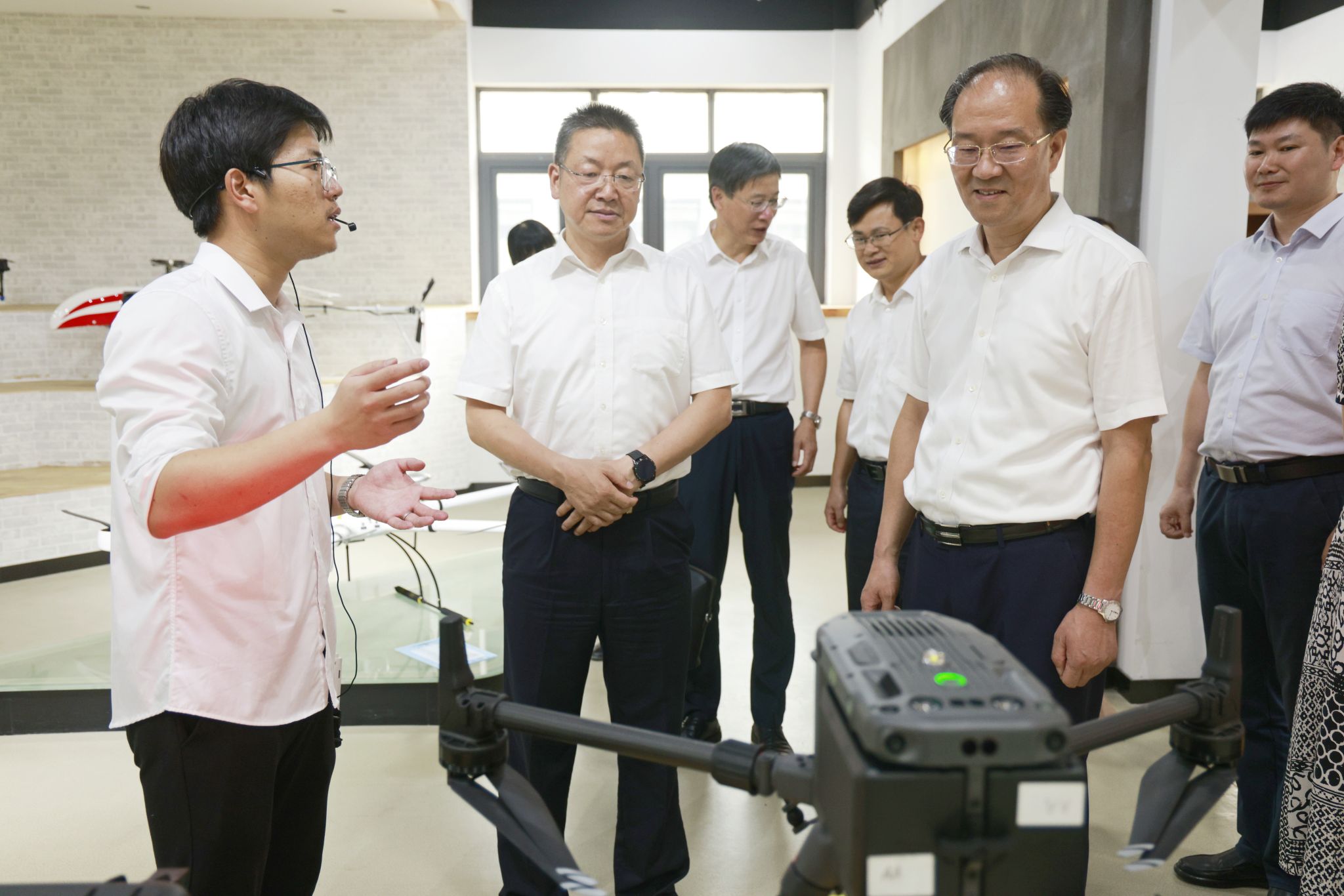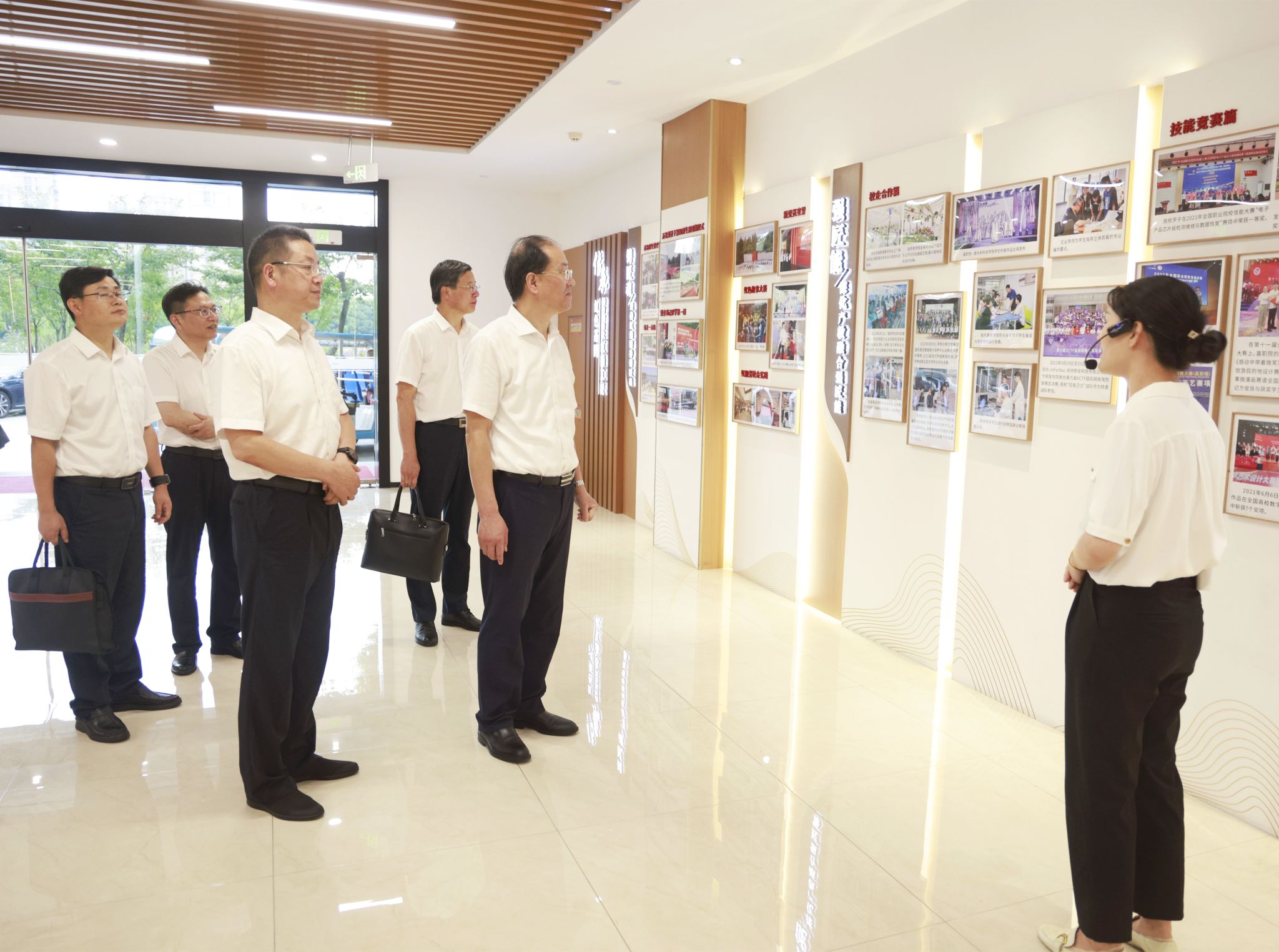 徐鳴陽一行實(shí)地參觀了無人機(jī)協(xié)同創(chuàng)新中心、工業(yè)互聯(lián)網(wǎng)智能產(chǎn)線綜合實(shí)訓(xùn)中心、時尚設(shè)計學(xué)院展廳、數(shù)字化教學(xué)空間、教師發(fā)展中心等,與師生深入交流,對學(xué)校人才培養(yǎng)、技術(shù)創(chuàng)新、校企合作等情況進(jìn)行多方面、多角度了解,對學(xué)校產(chǎn)教融合高質(zhì)量發(fā)展給予高度評價。