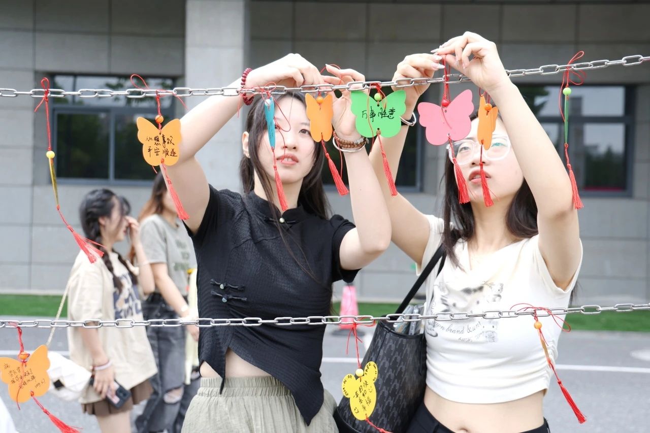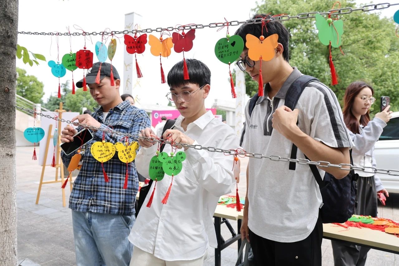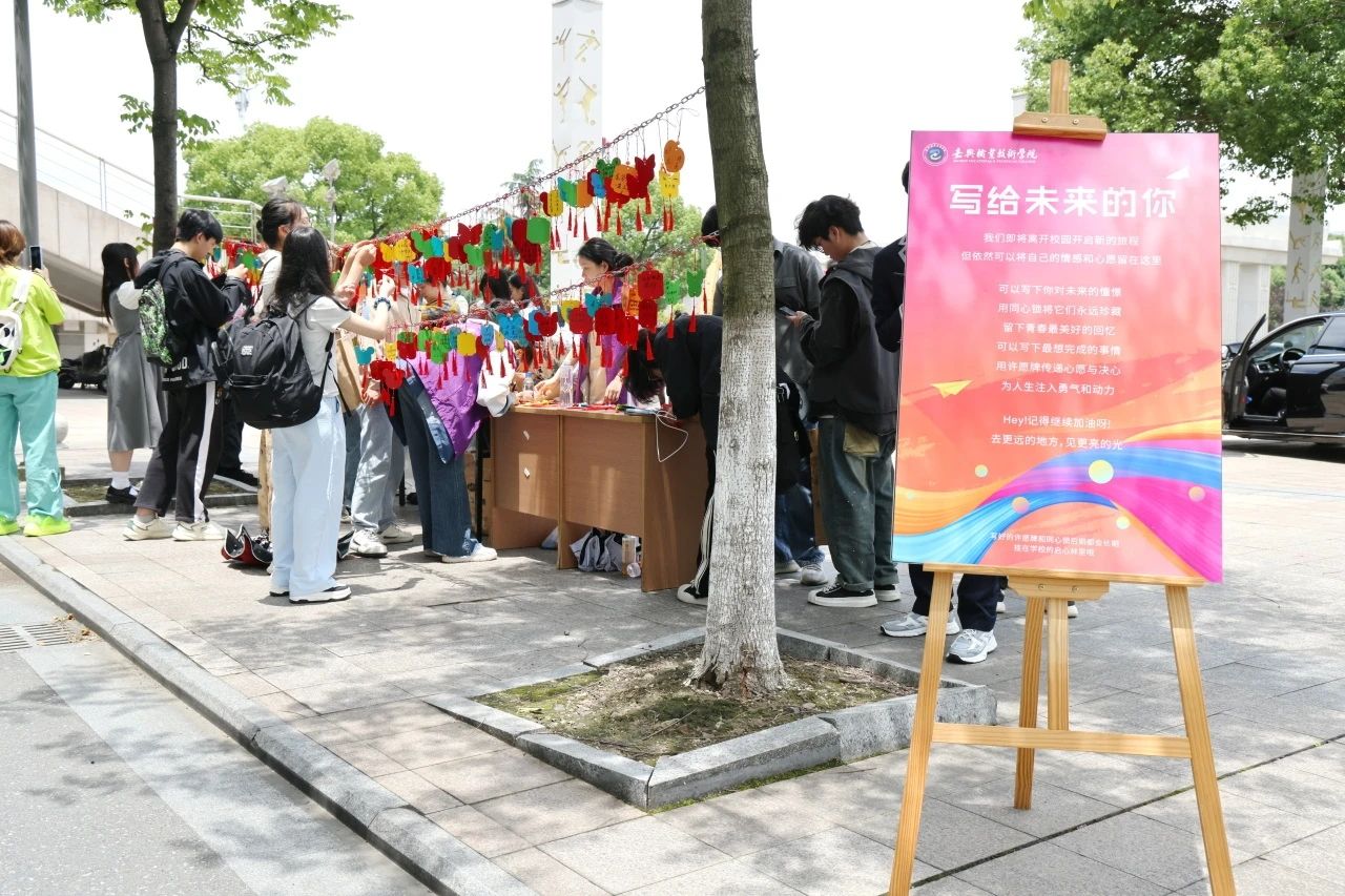 畢業(yè)之際,同學(xué)們掛上許愿牌,寫上對(duì)自己、親友、學(xué)校的美好祝福,和老師、朋友們合影留念,定格美好瞬間,記錄美好時(shí)刻,建立和延續(xù)嘉職人共同的情感紐帶。
