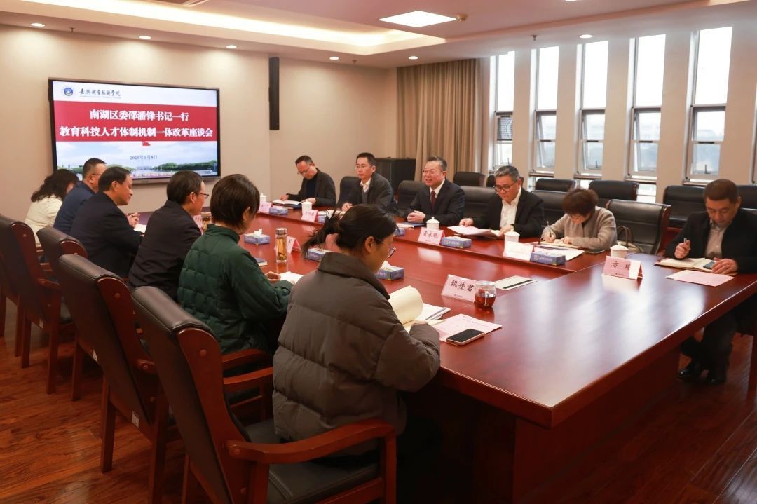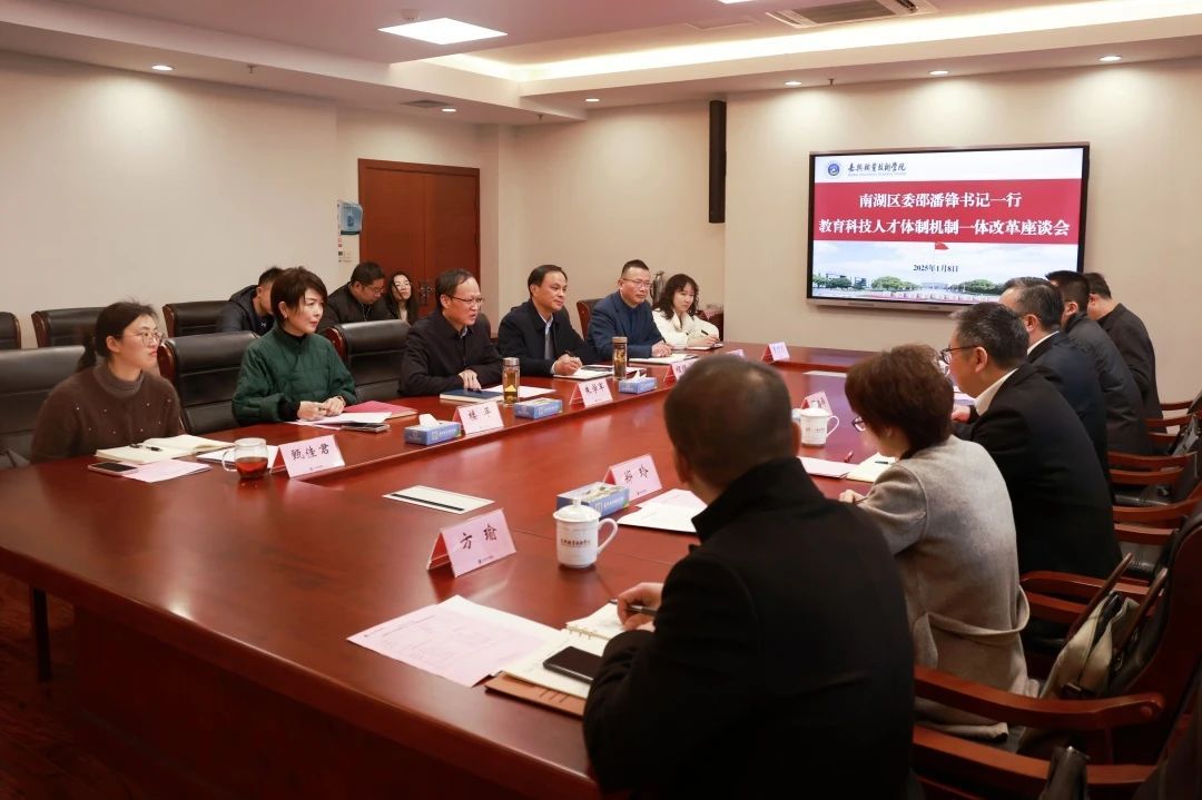 1月8日下午,南湖區(qū)委書記邵潘鋒一行來到嘉職院,交流推進教育科技人才體制機制一體改革工作,嘉職院黨委書記朱學軍接待并進行座談交流。