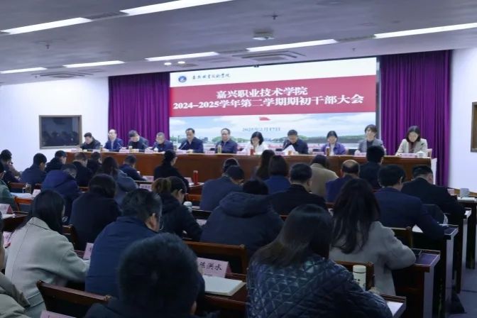 2月17日,嘉職院召開期初中層干部大會,傳達市兩會精神。黨委書記朱學軍出席并講話,院長張紅部署2025年學校工作重點。