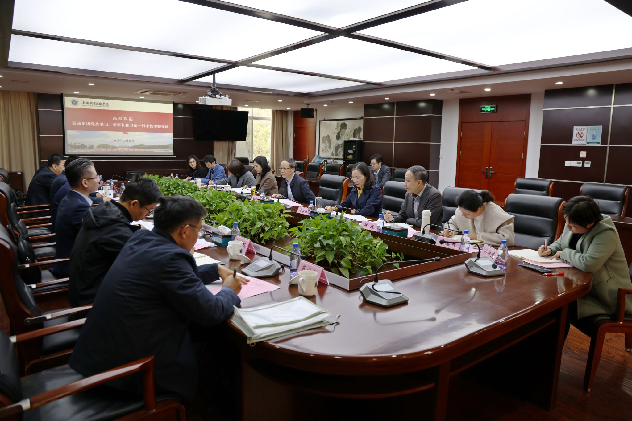 12月10日,嘉通集團(tuán)黨委書記、董事長(zhǎng)柏衛(wèi)東一行蒞臨嘉職院考察交流。嘉職院黨委書記朱學(xué)軍接待并進(jìn)行座談交流。