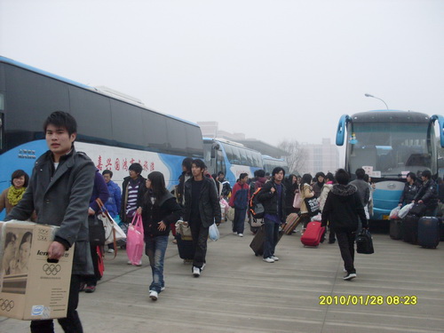 為解決同學(xué)們寒假回家難的問題,方便同學(xué)們順利返鄉(xiāng)過寒假,院學(xué)生處本著實(shí)實(shí)在在為學(xué)生辦實(shí)事的指導(dǎo)思想,積極與嘉興火車站、汽車站取得聯(lián)系,落實(shí)學(xué)生寒假返鄉(xiāng)的事情。一方面學(xué)生處與各分院大力配合,通過嘉興火車站為省外及省內(nèi)金華、衢州、溫州、麗水四個(gè)地區(qū)的同學(xué)訂購(gòu)火車票,共為學(xué)生訂票900多張,確保同學(xué)順利返鄉(xiāng)。另一方面,還積極與嘉興汽車站取得聯(lián)系,委托嘉興國(guó)鴻商務(wù)旅游公司前來(lái)學(xué)?,F(xiàn)場(chǎng)設(shè)點(diǎn)為學(xué)生買票,并把車子開到學(xué)校接送學(xué)生回家。經(jīng)過廣泛宣傳與精心組織,共為1200多位同學(xué)購(gòu)上了票,并于28日上午8:30組織26輛車開到校園內(nèi)浩浩蕩蕩地把學(xué)生統(tǒng)一送回家,深受學(xué)生的歡迎。(學(xué)生處)
