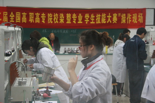 11月19日上午,屆全國(guó)高職高專院校染整專業(yè)學(xué)生技能大賽開(kāi)幕式后,參賽選手進(jìn)行了理論知識(shí)考試;下午,參賽選手們進(jìn)行了四個(gè)小時(shí)的實(shí)際操作考試。