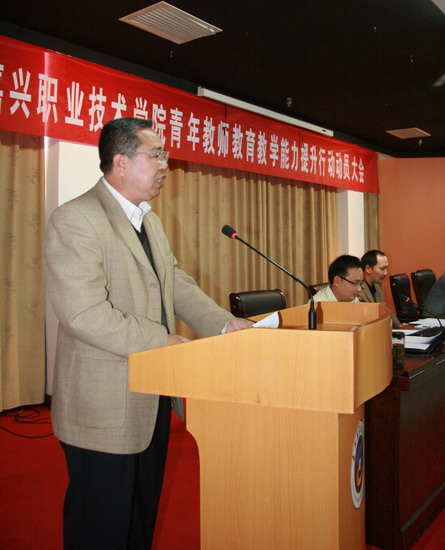 大會(huì)最后,盛健院長(zhǎng)作了重要講話。他指出,此次青年教師教育教學(xué)能力提升行動(dòng)是學(xué)院師資隊(duì)伍建設(shè)中的一項(xiàng)很重要的工作,目的是搭建平臺(tái),使大家在相互交流學(xué)習(xí)中盡快成長(zhǎng)起來(lái),廣大青年教師的進(jìn)步就是嘉職院的希望和未來(lái)。盛院長(zhǎng)對(duì)青年教師和指導(dǎo)教師提出了殷切的希望和要求。他希望每一位青年教師熱愛(ài)教師這個(gè)職業(yè),要把職業(yè)活動(dòng)培養(yǎng)成興趣愛(ài)好;要理解學(xué)生和了解學(xué)生,注意因材施教,正確引導(dǎo)學(xué)生;要盡力使自己成為一個(gè)師德高尚的人,努力錘煉自己的品德,不斷提高自己的專業(yè)能力,要不恥上問(wèn),虛心向老教師學(xué)習(xí),向日常教學(xué)活動(dòng)和工作實(shí)踐現(xiàn)場(chǎng)學(xué)習(xí)。廣大指導(dǎo)教師在專業(yè)上要與青年教師相互討論相互學(xué)習(xí),在教育教學(xué)上要關(guān)心青年教師,要盡心盡力去幫助他們成長(zhǎng)。