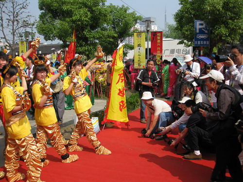 5月28日,我院紡織與藝術(shù)設(shè)計(jì)分院61名學(xué)生,身著服裝專業(yè)同學(xué)自己設(shè)計(jì)制作的虎娃系列服裝,在2009中國?嘉興端午民俗文化節(jié)上大放異彩。形象的設(shè)計(jì),生動(dòng)的造型,活潑的表演,虎娃方陣在民俗文化大巡游中的精彩亮相,吸引了大批游客駐足觀看,贏得了大家的一致好評(píng)。