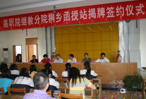 儀式上,首先由繼續(xù)教育分院院長吳海洪向與會領(lǐng)導(dǎo)和師生介紹了學(xué)院的基本情況、函授教育的工作要求和成人高考招生的工作程序;之后,嘉職院黨委副書記、副院長周建新代表學(xué)院與桐鄉(xiāng)綜合中專舉行了隆重的揭牌儀式。