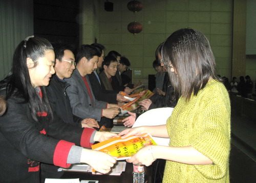 會議首先由學(xué)生處副處長王敏堅(jiān)老師宣讀表彰文件,對在2008學(xué)年第一學(xué)期公寓文明文化建設(shè)中作出重要貢獻(xiàn)、取得優(yōu)異成績的先進(jìn)集體和個(gè)人進(jìn)行了表彰。