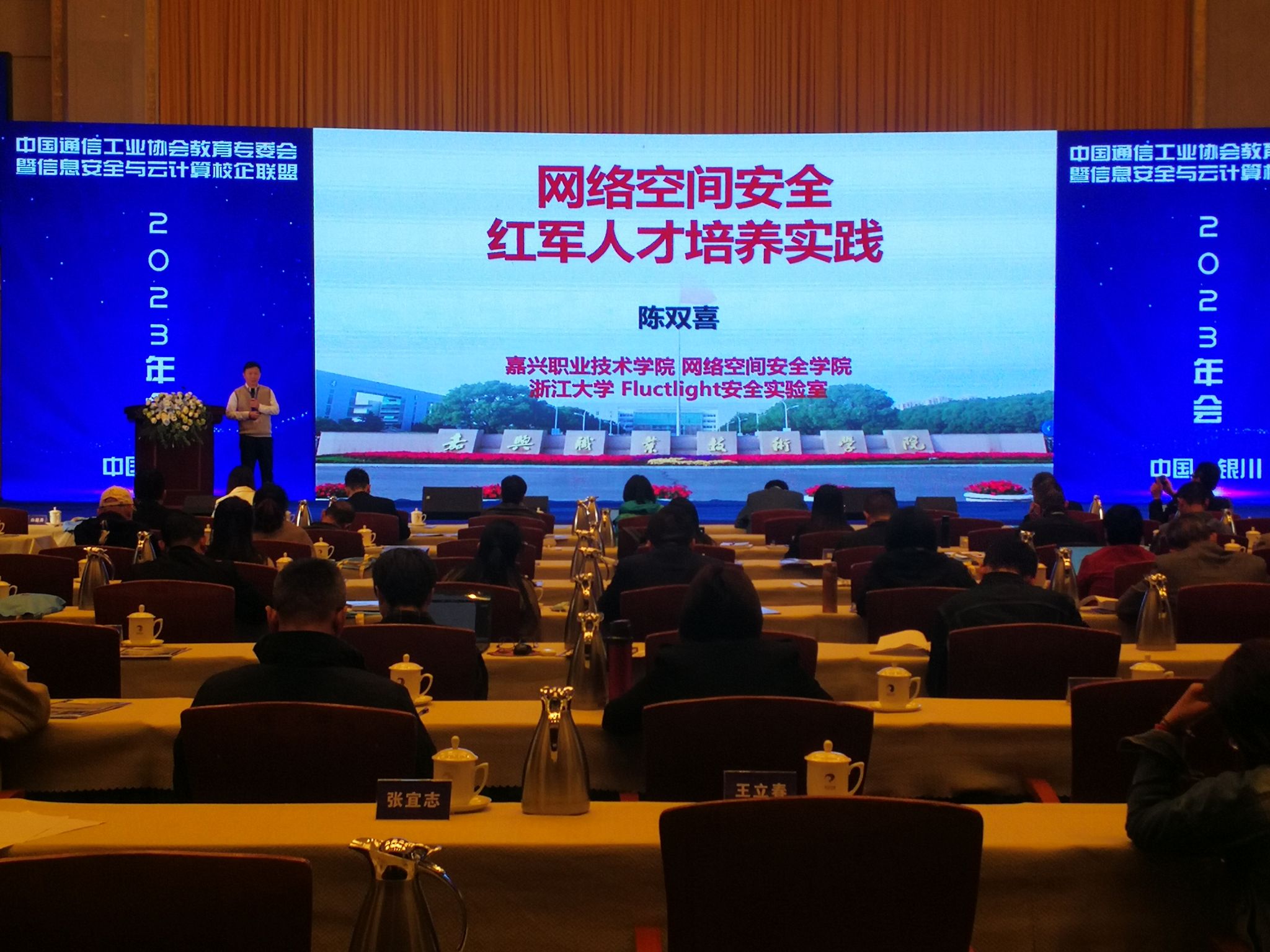 近日,2023年中國通信工業(yè)協(xié)會教育專委會暨中國通信工業(yè)協(xié)會信息安全與云計算校企聯(lián)盟年會在銀川舉行,全國相關(guān)職業(yè)院校、行業(yè)領(lǐng)軍企業(yè)參加會議,嘉職院互聯(lián)網(wǎng)學(xué)院、網(wǎng)絡(luò)空間安全學(xué)院院長陳雙喜受邀出席并作主題報告。
