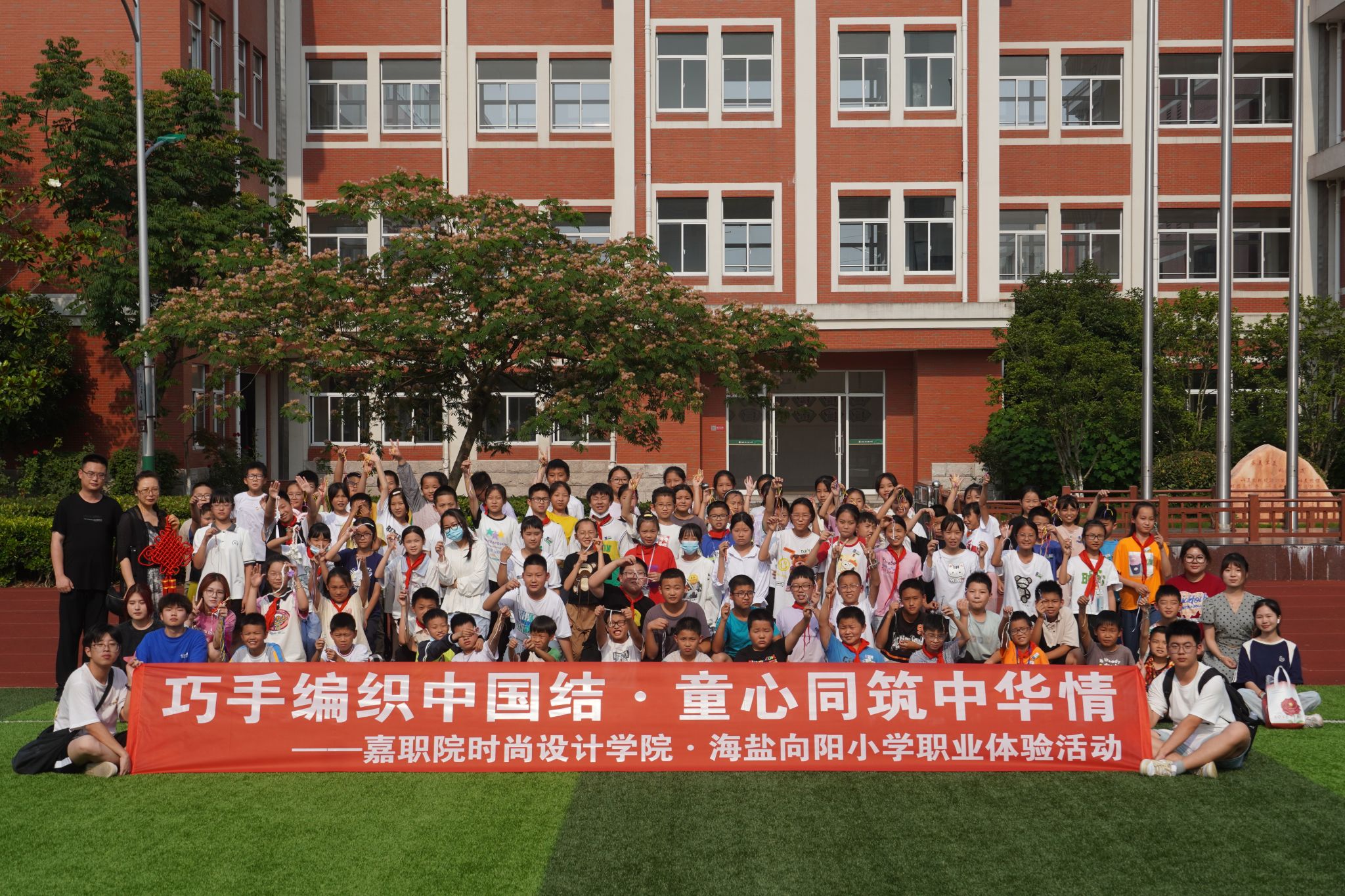 6月15日下午,嘉職院時尚設(shè)計學院師生赴嘉興市海鹽向陽小學開展“非遺編繩進校園”職業(yè)體驗系列活動,向陽小學五年級學生170余人參加本次活動。