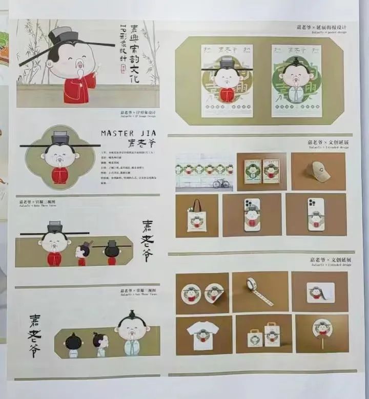 文創(chuàng)部分的展物由學(xué)校文化與旅游學(xué)院提供,文化創(chuàng)意與策劃專業(yè)師生團隊將別出心裁的文化創(chuàng)意、青春時尚的設(shè)計理念與嘉興宋韻文化元素等巧妙融合,形成一系列嘉禾宋韻文創(chuàng)作品?!蹲映?/span>IP形象設(shè)計—嘉老爺》《子城·相守相望》《蘿軒變古箋譜》《府宴·相見歡》等一系列生動形象、栩栩如生的文創(chuàng)作品吸引了無數(shù)目光,特別是憨態(tài)可掬的“嘉老爺”,頗受來賓的青睞。它以嘉興府的官員為原型,加以現(xiàn)代審美的改造而成,用藝術(shù)的手法探尋宋韻寶藏的可愛“打工人”形象。