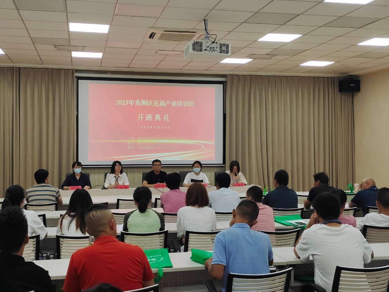 為有效提升秀洲區(qū)蓮藕質(zhì)量、蓮藕產(chǎn)業(yè)產(chǎn)銷水平,更好推動(dòng)秀洲區(qū)蓮藕產(chǎn)業(yè)發(fā)展,助力鄉(xiāng)村振興、農(nóng)民富裕。6月16日,由嘉興市秀洲區(qū)農(nóng)業(yè)農(nóng)村和水利局主辦,嘉興職業(yè)技術(shù)學(xué)院時(shí)尚設(shè)計(jì)學(xué)院承辦,王江涇成人文化技術(shù)學(xué)校協(xié)辦的嘉興市秀洲區(qū)蓮藕產(chǎn)業(yè)培訓(xùn)班在王江涇黨群服務(wù)中心召開。來自秀洲區(qū)的蓮藕產(chǎn)業(yè)合作社、家庭農(nóng)場負(fù)責(zé)人以及種植、營銷大戶70余人參加培訓(xùn)。