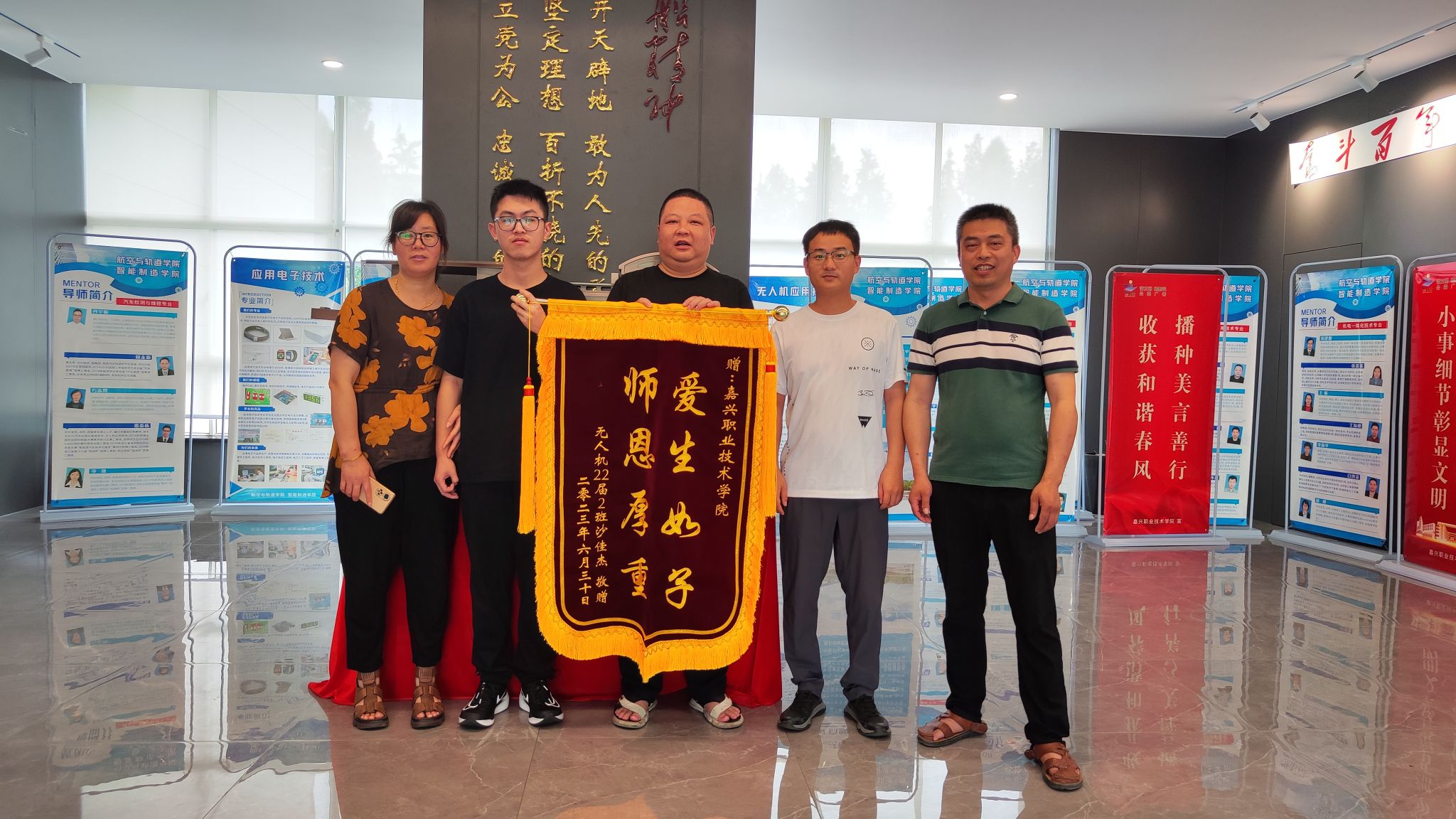 6月30日,航空與軌道學(xué)院、智能制造學(xué)院無(wú)人機(jī)222班沙佳杰同學(xué)的家長(zhǎng)來(lái)到學(xué)校,當(dāng)面向輔導(dǎo)員甘明星和班主任萬(wàn)紫贈(zèng)送感謝錦旗,誠(chéng)摯表達(dá)了感謝之情。