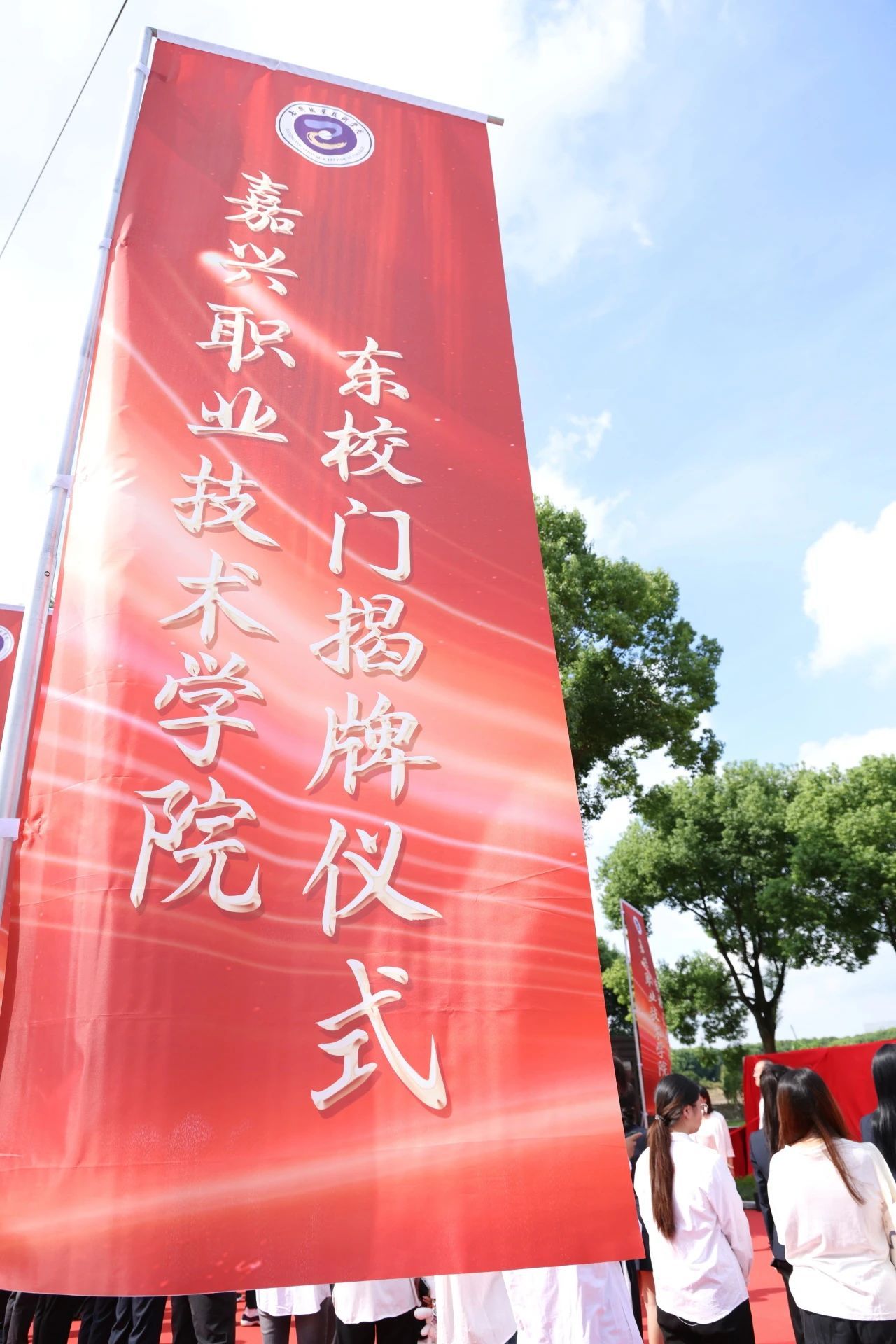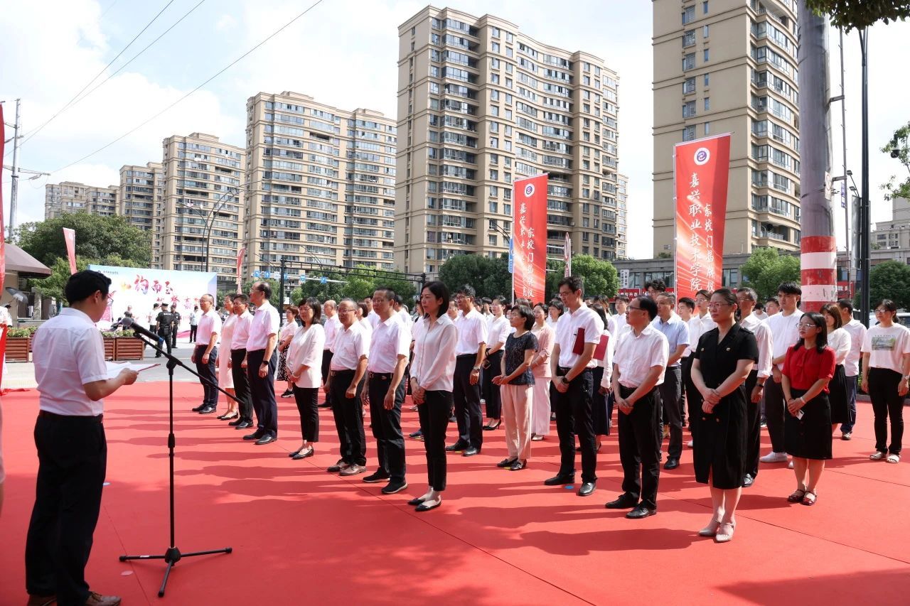 9月1日,嘉職院舉行東校門揭牌儀式。黨委書記方俊良、院長張紅共同為東校門揭牌,黨委委員、副院長汪明華主持。