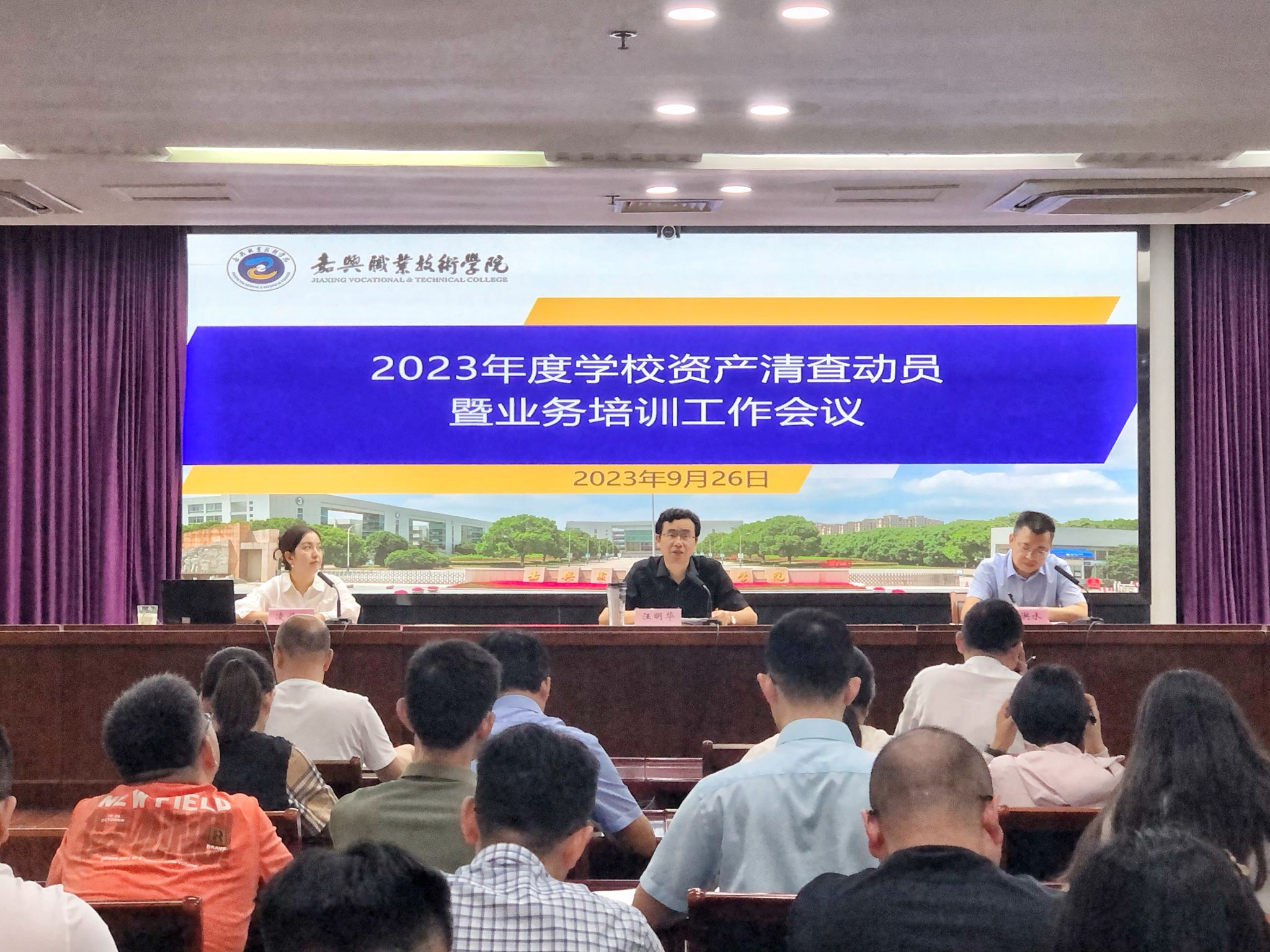 為夯實(shí)資產(chǎn)管理基礎(chǔ),加快推進(jìn)學(xué)?!皵?shù)字校園”信息化建設(shè),根據(jù)《嘉興市財(cái)政局關(guān)于開(kāi)展市級(jí)行政事業(yè)單位固定資產(chǎn)清查的通知》要求, 9月26日,嘉職院召開(kāi)2023年度資產(chǎn)清查動(dòng)員暨業(yè)務(wù)培訓(xùn)工作會(huì)議,會(huì)議就“學(xué)校2023年度固定資產(chǎn)清查工作方案”進(jìn)行解讀,并對(duì)具體工作事項(xiàng)做詳細(xì)說(shuō)明。校黨委委員、副院長(zhǎng)汪明華出席并講話。