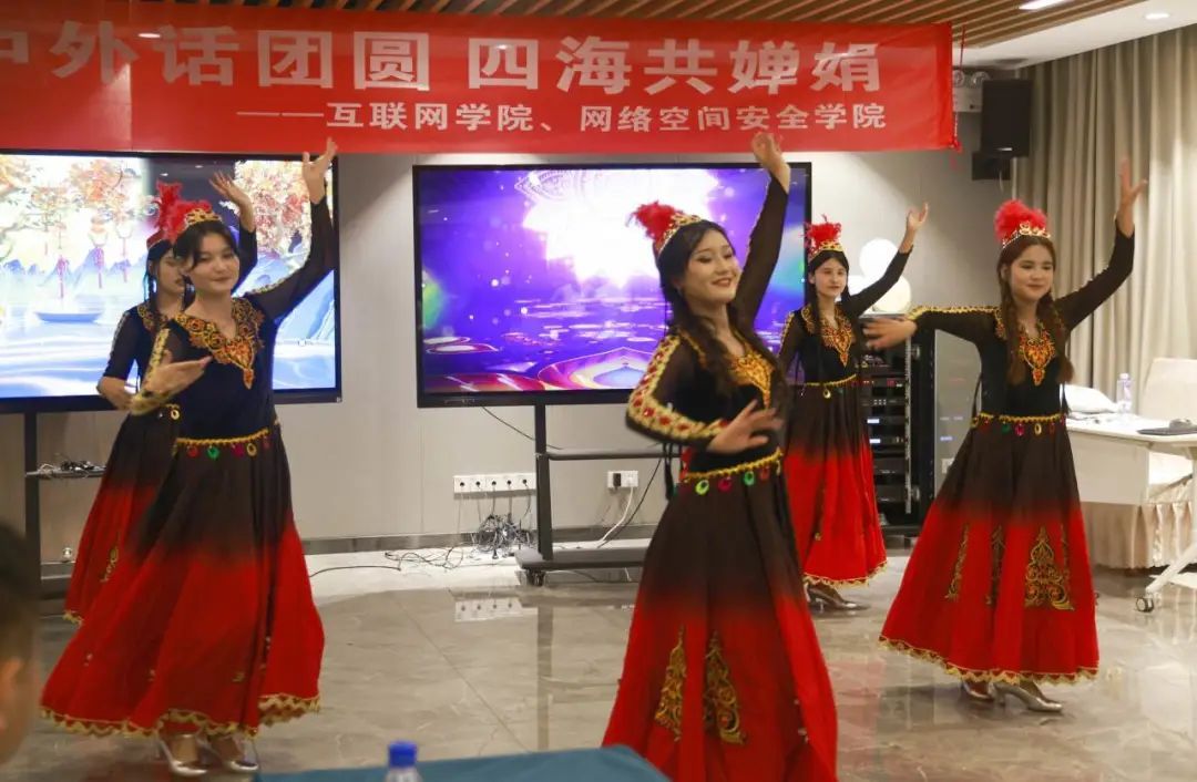 文藝匯演環(huán)節(jié),越南留學(xué)生合唱歌曲《國(guó)際友好一家親》,少數(shù)民族學(xué)生表演民族舞蹈《歡樂地跳吧!》、演唱民族歌曲《烏蘭巴托之夜》,漢族學(xué)生演唱歌曲《但愿人長(zhǎng)久》、表演古箏曲《春江花月夜》,大家分享家鄉(xiāng)特產(chǎn),猜謎語(yǔ)、玩游戲,交流中秋節(jié)歷史、文化內(nèi)涵、家鄉(xiāng)風(fēng)俗,現(xiàn)場(chǎng)其樂融融,歡聲笑語(yǔ)不斷。
