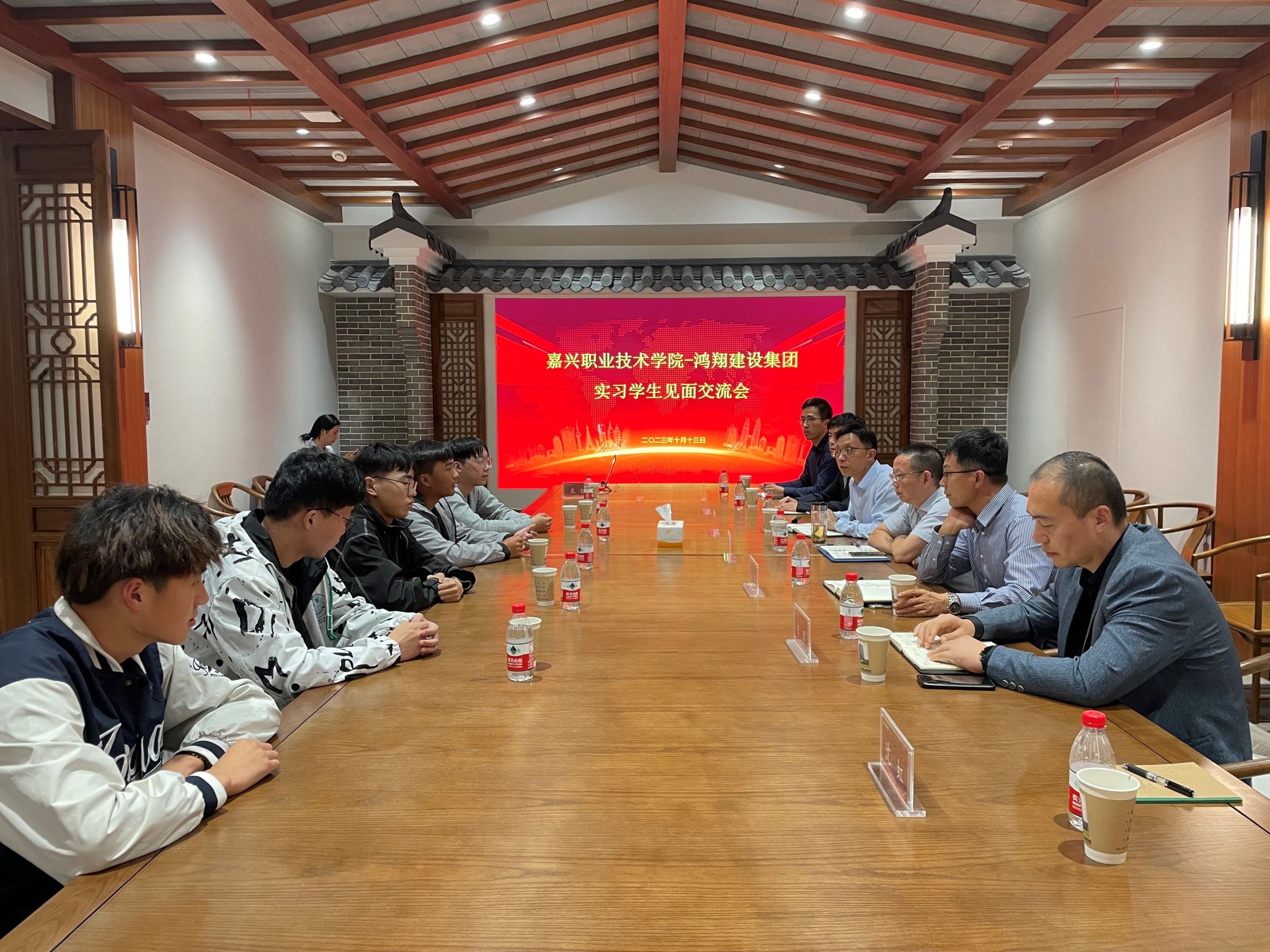 為進一步推動產(chǎn)學研深度融合,10月13日下午,嘉職院黨委委員、紀委書記陳勝帶隊赴鴻翔建設(shè)集團有限公司調(diào)研交流,并看望城市建設(shè)學院實習學生。鴻翔建設(shè)集團有限公司總經(jīng)理馬小平接待并進行座談。