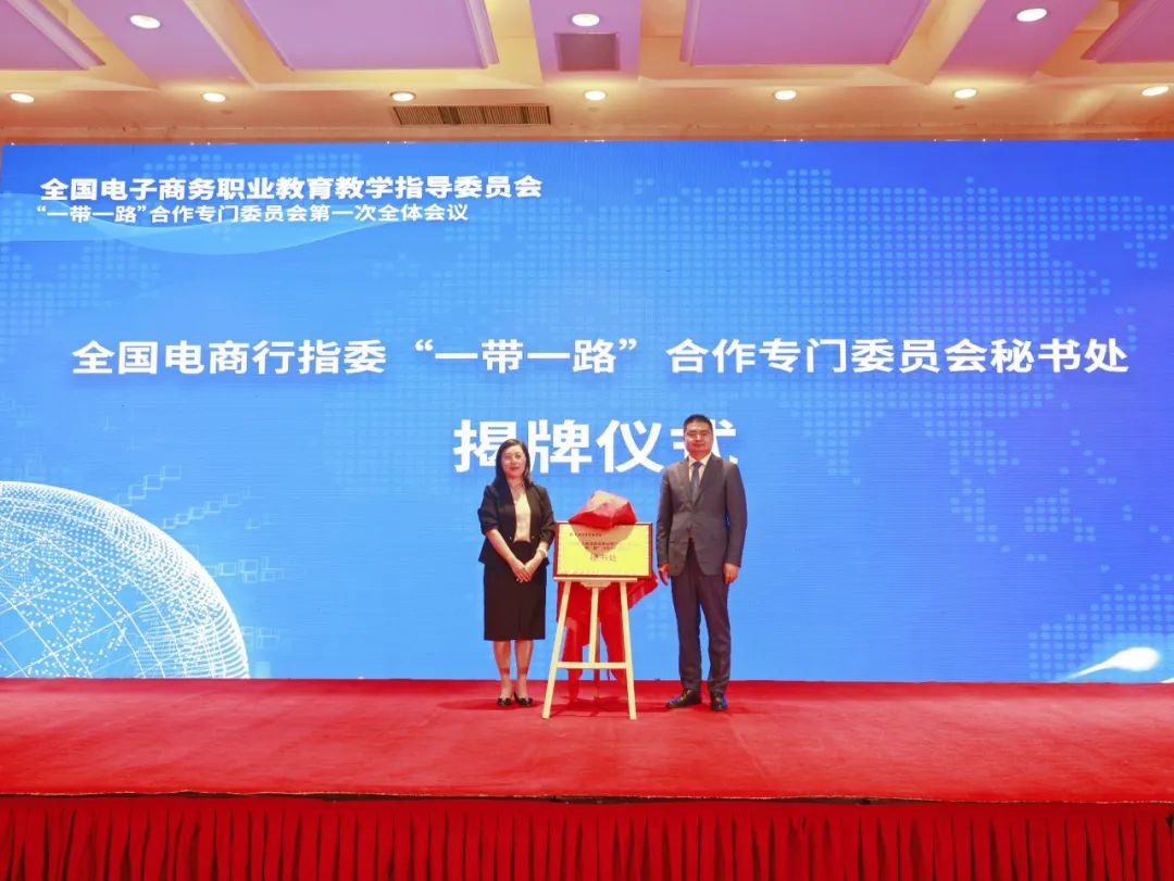 陸春陽(yáng)和張紅共同為全國(guó)電商行指委“一帶一路”合作專門委員會(huì)秘書處揭牌。