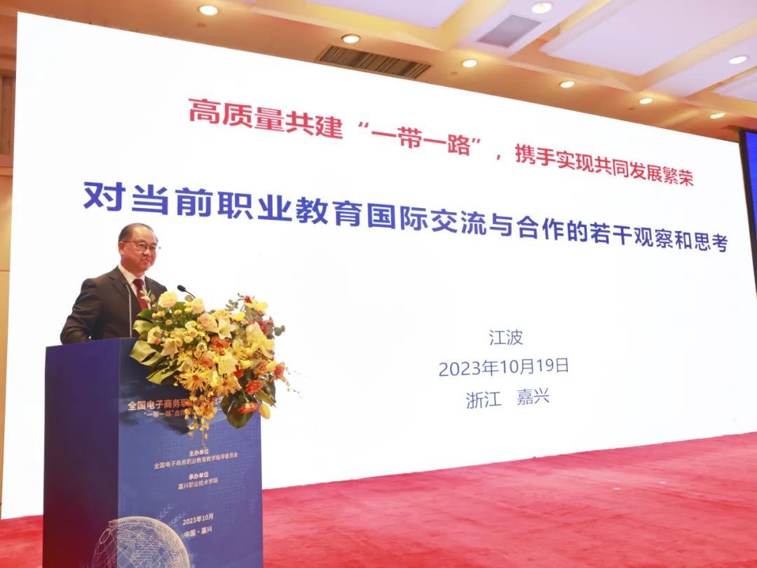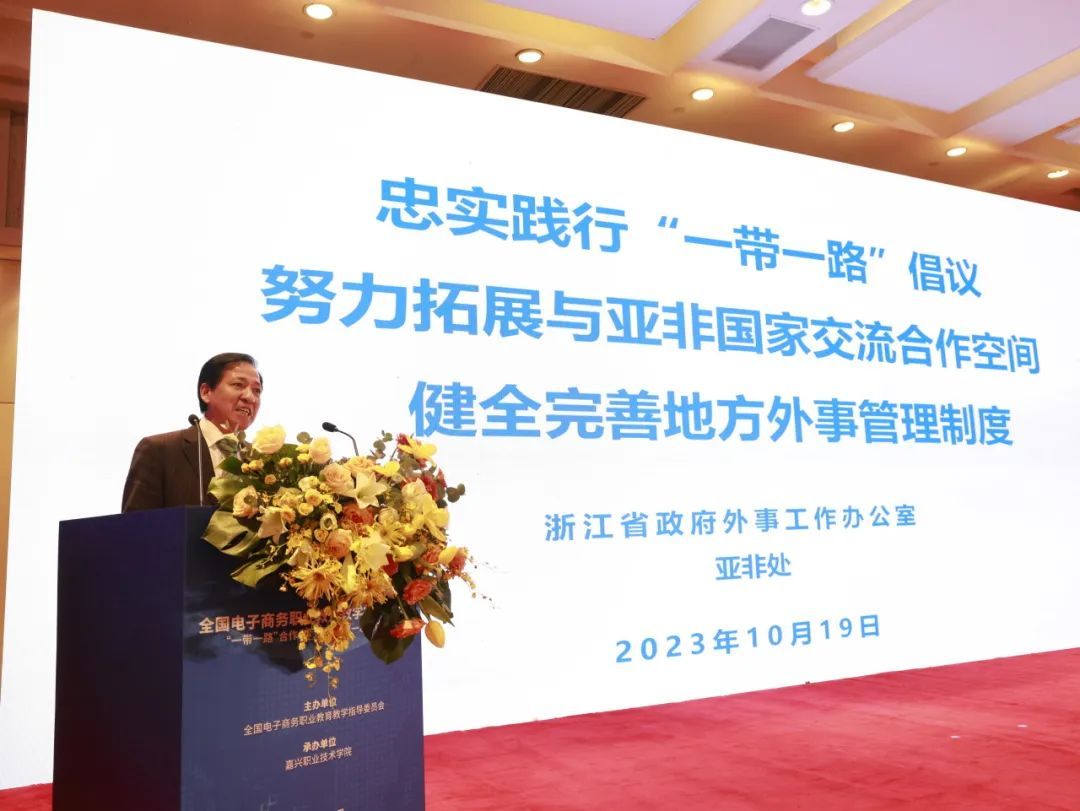 會(huì)議上,全國(guó)電商行指委常務(wù)副主任委員陸春陽(yáng)作工作報(bào)告,教育部國(guó)際合作與交流司原副司長(zhǎng)、同濟(jì)大學(xué)原副校長(zhǎng)江波,浙江省人民政府外事辦公室亞洲非洲處二級(jí)調(diào)研員張?jiān)孪樽鲗n}報(bào)告,嘉職院院長(zhǎng)張紅致歡迎辭,浙江省教育國(guó)際交流協(xié)會(huì)副秘書長(zhǎng)陳璐致辭。會(huì)議由江蘇經(jīng)貿(mào)職業(yè)技術(shù)學(xué)院院長(zhǎng)薛茂云主持。