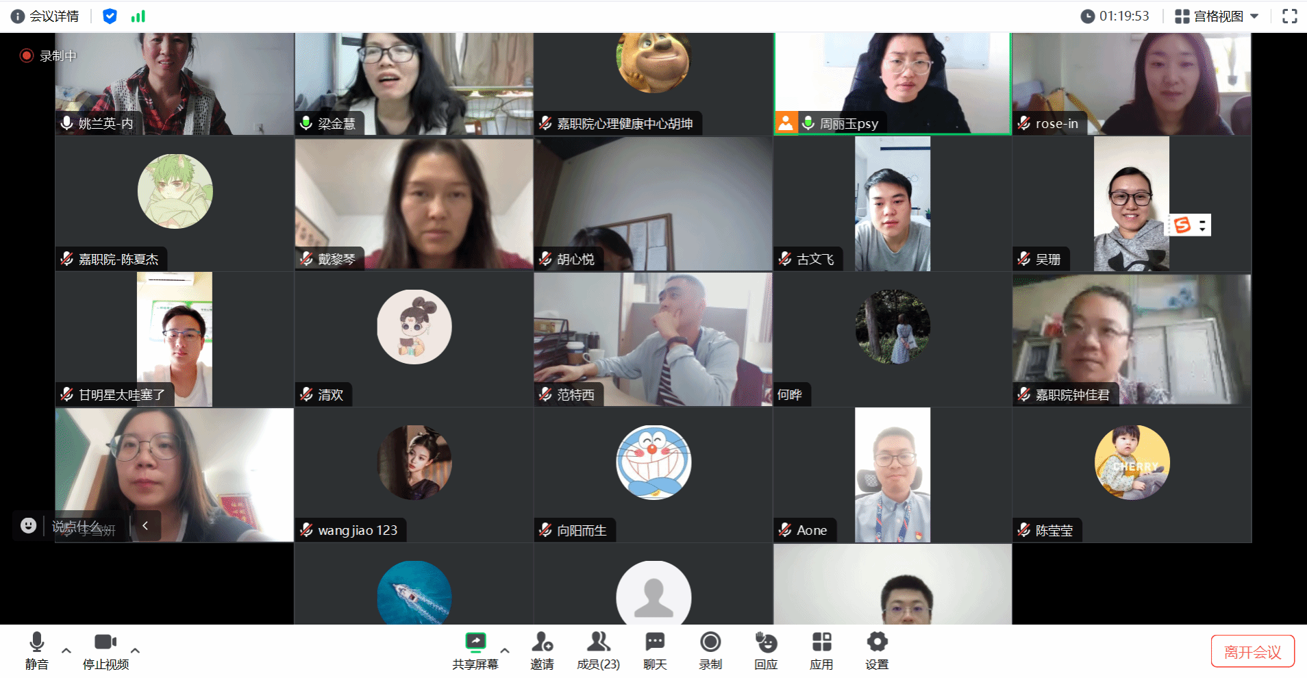 10月25日,浙江省四所高職院校大學(xué)生心理健康教研室的23名專兼職心理健康教育老師參加了一次特別的云教研活動(dòng)。云教研系列活動(dòng)由浙江旅游職業(yè)學(xué)院、浙江交通職業(yè)技術(shù)學(xué)院、浙江紡織服裝職業(yè)技術(shù)學(xué)院、嘉興職業(yè)技術(shù)學(xué)院聯(lián)合發(fā)起。第一期活動(dòng)主題為“高職院校心理健康課程建設(shè)探討:現(xiàn)狀、發(fā)展思路與困難”,由浙江旅游職業(yè)學(xué)院心理健康教研室主任周麗玉副教授主持。