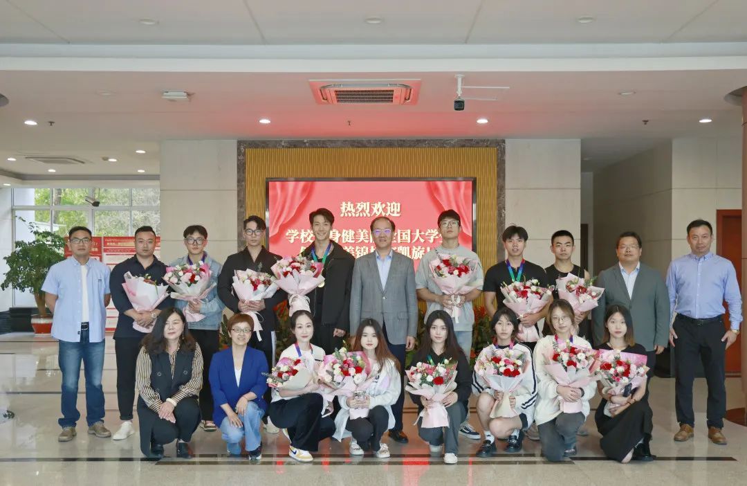 10月24日,2023年中國(guó)大學(xué)生健身健美錦標(biāo)賽圓滿落幕,嘉職院健身健美隊(duì)12名運(yùn)動(dòng)員充分發(fā)揚(yáng)不怕困難、頑強(qiáng)拼搏的精神,在激烈競(jìng)爭(zhēng)中脫穎而出,取得兩金、兩銀、三銅,團(tuán)體總分第一名的好成績(jī)。黨委書記方俊良?xì)g迎獲獎(jiǎng)團(tuán)隊(duì)凱旋。