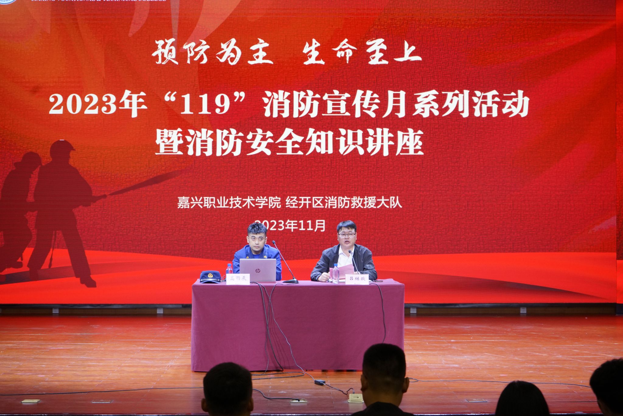 為深入學習貫徹黨的二十大精神和習近平總書記關于宣傳與安全生產(chǎn)系列重要論述精神,不斷強化消防安全教育培訓,進一步增強師生消防安全意識和突發(fā)火災時的逃生自救能力,積極營造濃厚的消防安全氛圍。11月6日下午,嘉職院聯(lián)合經(jīng)開區(qū)消防救援大隊在2號樓報告廳舉行以“預防為主,生命至上”為主題的2023年“119”消防月宣傳啟動儀式,并組織廣大師生進行消防安全知識集中培訓、消防滅火實操和應急逃生演練。