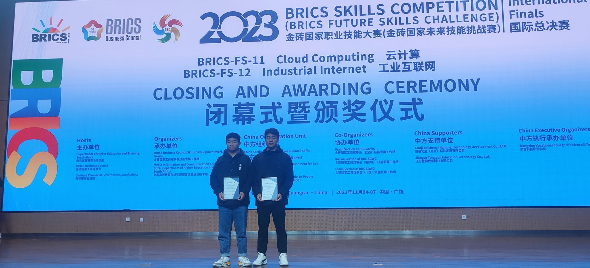 近日,2023年金磚國家職業(yè)技能大賽中國分賽區(qū)工業(yè)互聯(lián)網(wǎng)賽項(xiàng)國際總決賽在山東舉行。嘉職院互聯(lián)網(wǎng)學(xué)院、網(wǎng)絡(luò)空間安全學(xué)院學(xué)生王賽博、周福晨獲得二等獎(jiǎng),指導(dǎo)教師吳榮森榮獲國際賽“優(yōu)秀指導(dǎo)專家”榮譽(yù)稱號(hào)。
