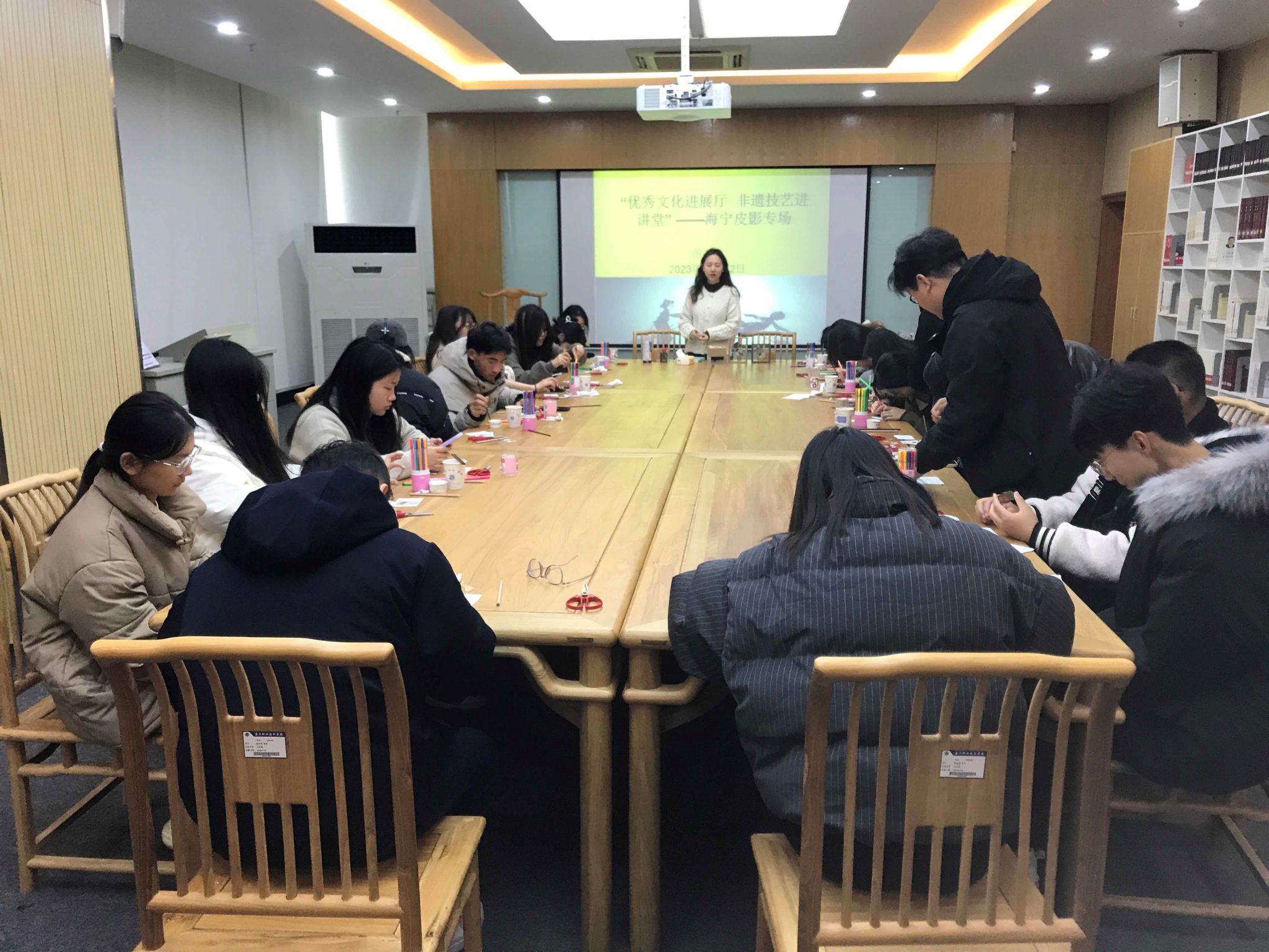 中華優(yōu)秀傳統(tǒng)文化源遠(yuǎn)流長、博大精深,是中華民族的精神命脈,為讓年輕一代了解、體驗(yàn)、喜愛中華優(yōu)秀傳統(tǒng)文化,并與現(xiàn)代文化產(chǎn)業(yè)、現(xiàn)代文化科技相結(jié)合,加強(qiáng)對(duì)傳統(tǒng)文化資源的宣傳推廣,讓全社會(huì)關(guān)注、傳承中華優(yōu)秀傳統(tǒng)文化,12月12日下午,嘉職院圖書館與海寧皮影藝術(shù)團(tuán)有限公司聯(lián)合舉辦“優(yōu)秀文化進(jìn)展廳 非遺技藝進(jìn)講堂”———海寧皮影專場活動(dòng)。