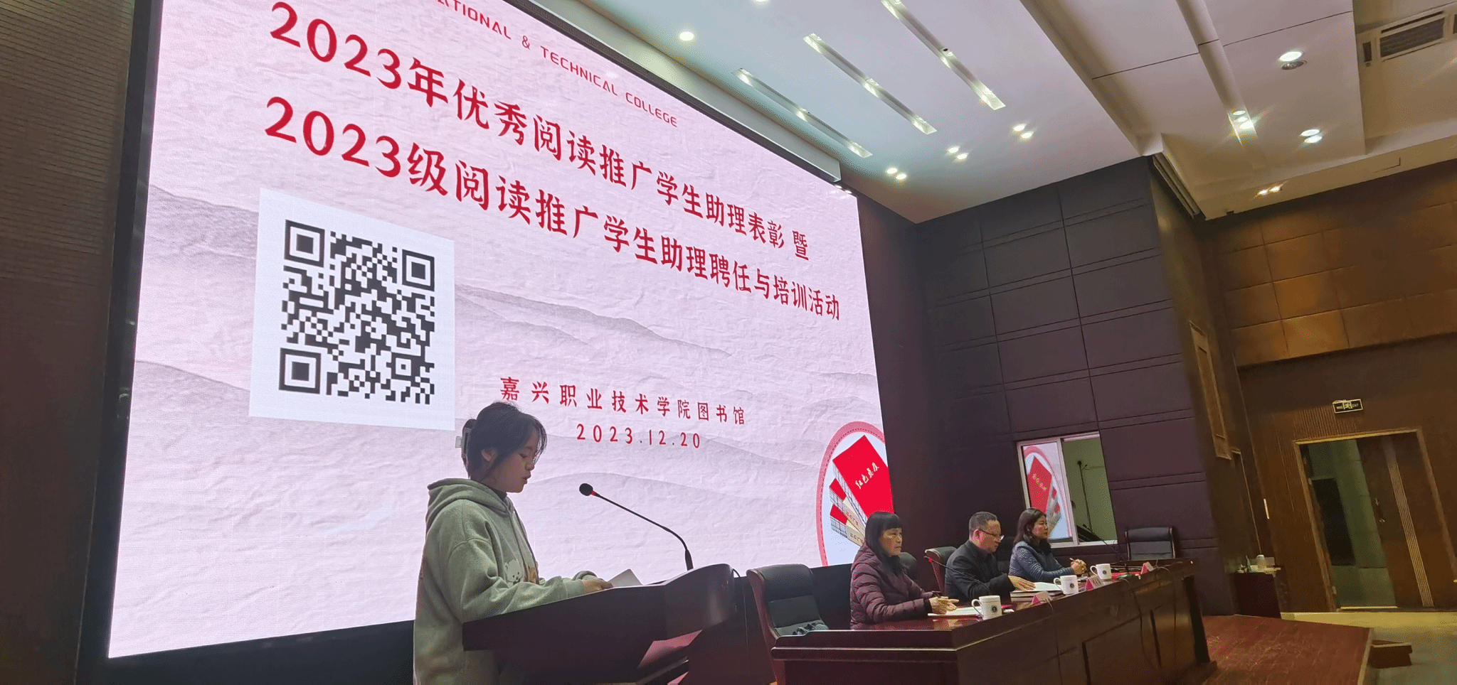 為表彰在2023年閱讀推廣中表現(xiàn)優(yōu)秀的學(xué)生閱讀推廣助理,提高2023級閱讀推廣學(xué)生助理的信息素養(yǎng)和閱讀推廣能力,12月20日,嘉職院圖書館隆重舉行2023級優(yōu)秀閱讀推廣學(xué)生助理表彰暨2023級閱讀推廣學(xué)生助理聘任與信息素養(yǎng)培訓(xùn)活動。黨委委員、副院長項大海出席并講話。