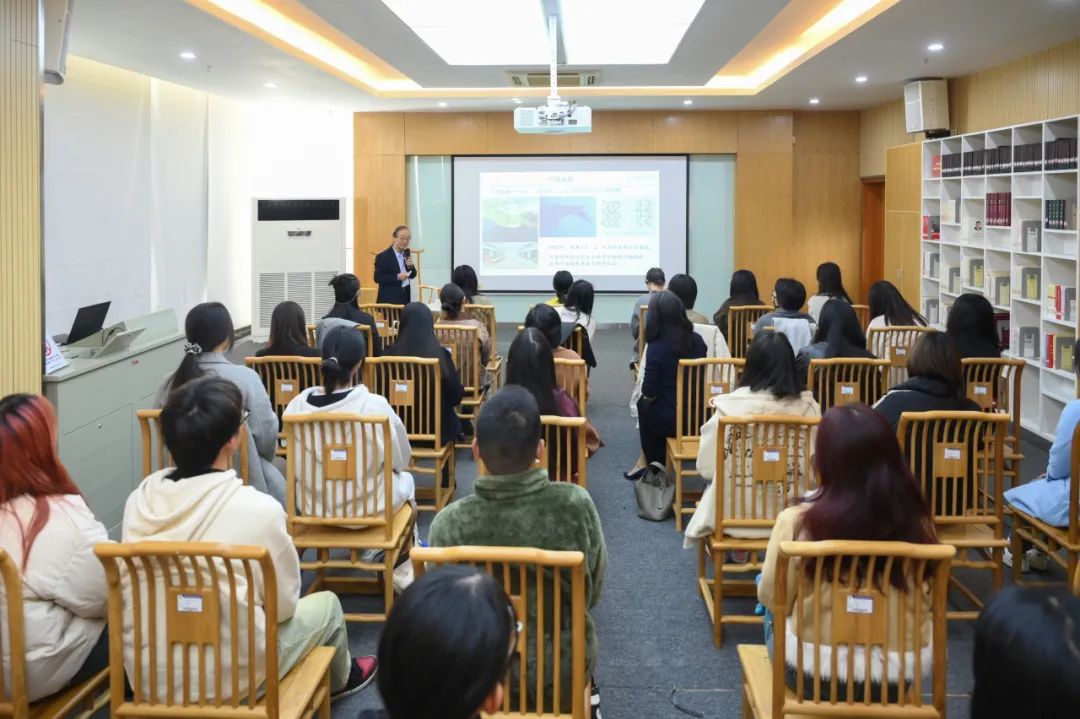 開展儀式后,方俊良、祝成炎等參觀作品展,祝成炎作《“一帶一路”與絲綢文化交流》專題講座。