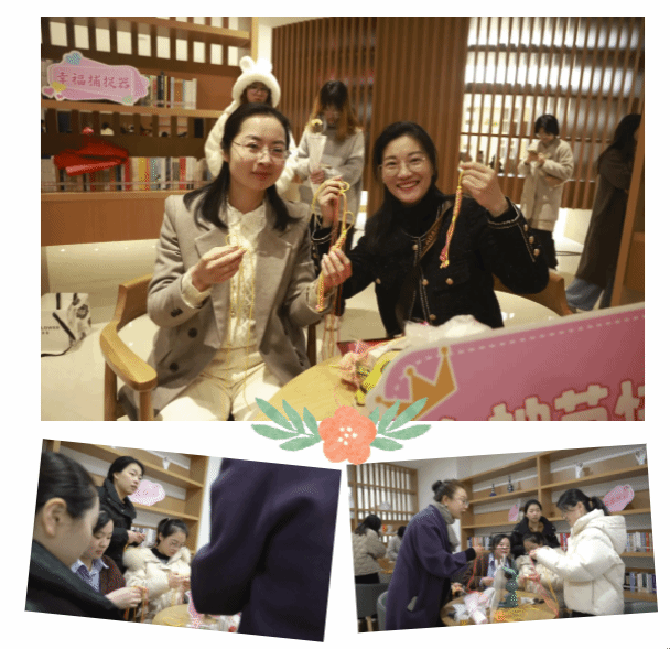 學(xué)校三八節(jié)活動不僅受到了女教職工們的追捧,還吸引了嘉興市公安局出入境管理局婦女小組的參與。在手工編織活動區(qū)域,她們一邊聆聽指導(dǎo)老師的講解,一邊聚精會神緊跟老師節(jié)奏,一步一步動手學(xué)習(xí),現(xiàn)場氛圍十分融洽。