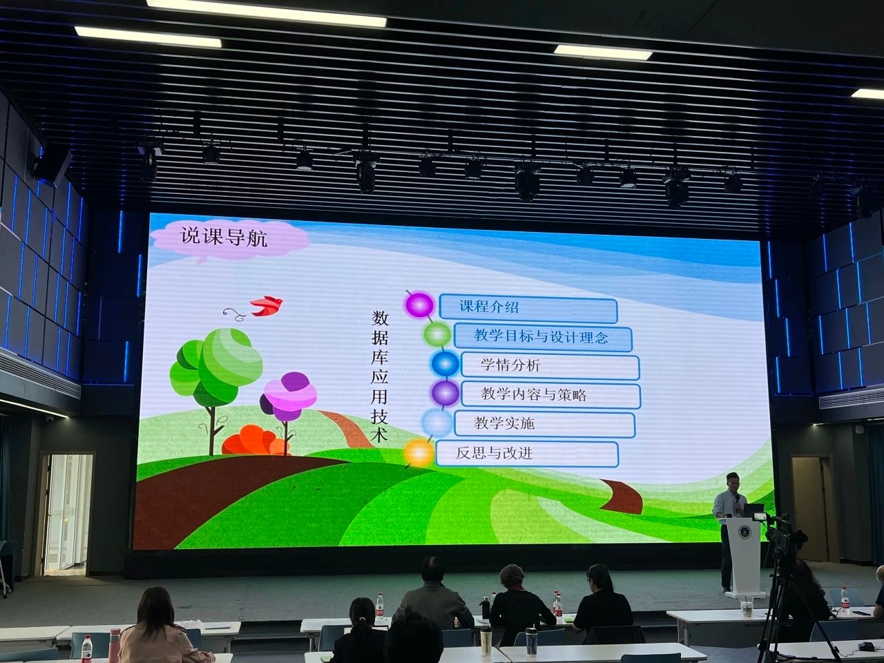 “說課程”比賽聚焦于課程建設(shè),專業(yè)教師從課程設(shè)置、課程目標(biāo)、課程內(nèi)容、教學(xué)整體設(shè)計(jì)、教學(xué)實(shí)施過程、學(xué)生學(xué)習(xí)效果、反思改進(jìn)等方面進(jìn)行深入闡述。