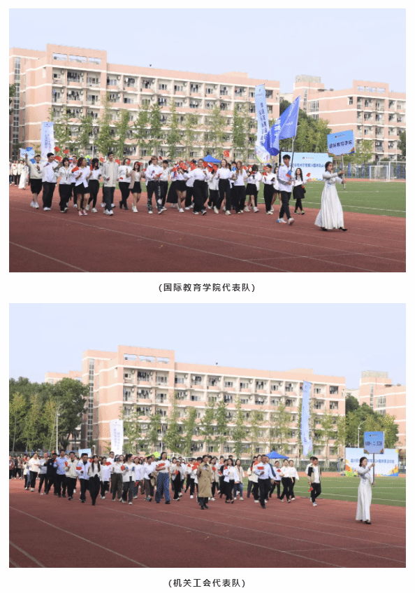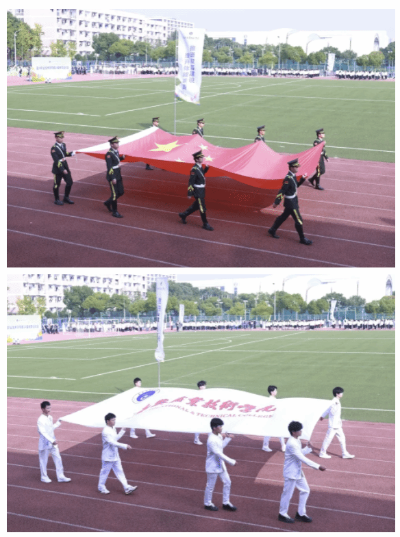 伴隨著慷慨激昂的運(yùn)動員進(jìn)行曲,國旗隊(duì)、校旗隊(duì)、鮮花隊(duì)、紅旗隊(duì)、各二級學(xué)院運(yùn)動員代表方陣、各二級工會教師代表方陣和裁判團(tuán)代表方陣等依次入場。他們邁著矯健的步伐、喊著嘹亮的口號,精神抖擻、意氣風(fēng)發(fā),斗志昂揚(yáng),充分展現(xiàn)了嘉職師生奮力拼搏、蓬勃向上的最佳風(fēng)采。