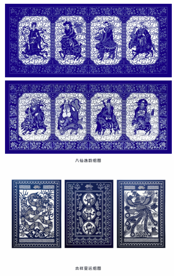 活動(dòng)中,許永明以其深厚的藝術(shù)功底和獨(dú)特的視角,向師生們?cè)敿?xì)介紹了剪紙的起源、發(fā)展、表現(xiàn)形式、技藝類型等,以及不同地域的剪紙風(fēng)格。圖文并茂的講解讓師生們直觀感受了藍(lán)韻剪紙?zhí)N含的吉祥寓意和豐富文化,尤其是他花費(fèi)125個(gè)小時(shí)創(chuàng)作并榮獲2024年全國(guó)剪紙藝術(shù)精品展金獎(jiǎng)的《八仙逸韻》,將對(duì)非遺藍(lán)染和燈彩技藝兩大國(guó)家級(jí)非遺項(xiàng)目的研究心得巧妙融合在精細(xì)的刻刀技藝中,展現(xiàn)了藝術(shù)融合煥新的無(wú)窮魅力。