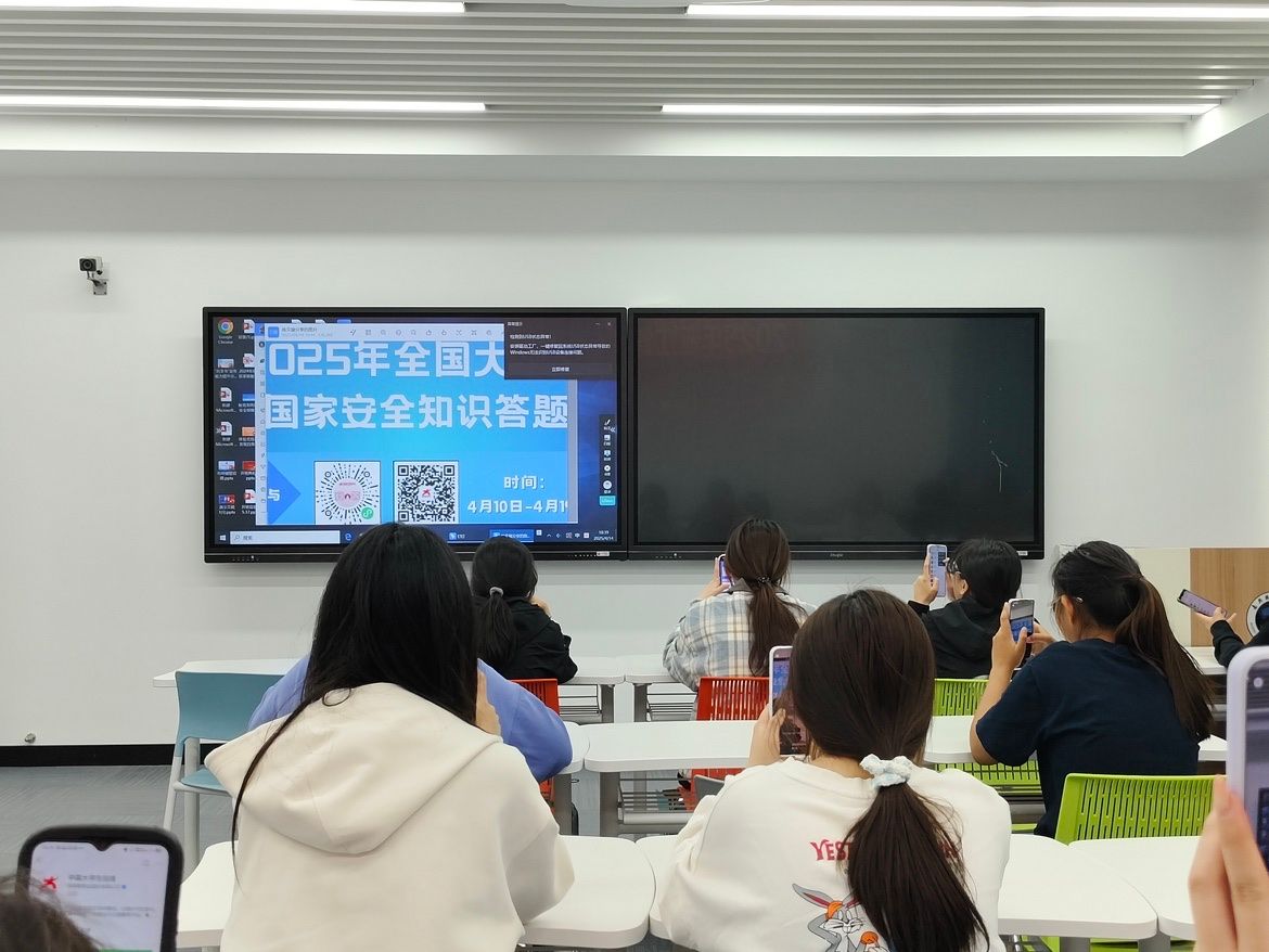 4月15日當(dāng)天,全校萬余師生通過七大直播平臺同步收看《千萬師生同上一堂課》國家安全公開課。課程以“北斗系統(tǒng)研發(fā)中的反間諜斗爭”“轉(zhuǎn)基因物種的生物安全防控”等鮮活案例,全景展現(xiàn)非傳統(tǒng)安全領(lǐng)域的攻防博弈。學(xué)習(xí)結(jié)束后,同學(xué)們紛紛感慨:“原來朋友圈的軍事基地定位分享就可能構(gòu)成泄密,國家安全真的就在身邊!”
