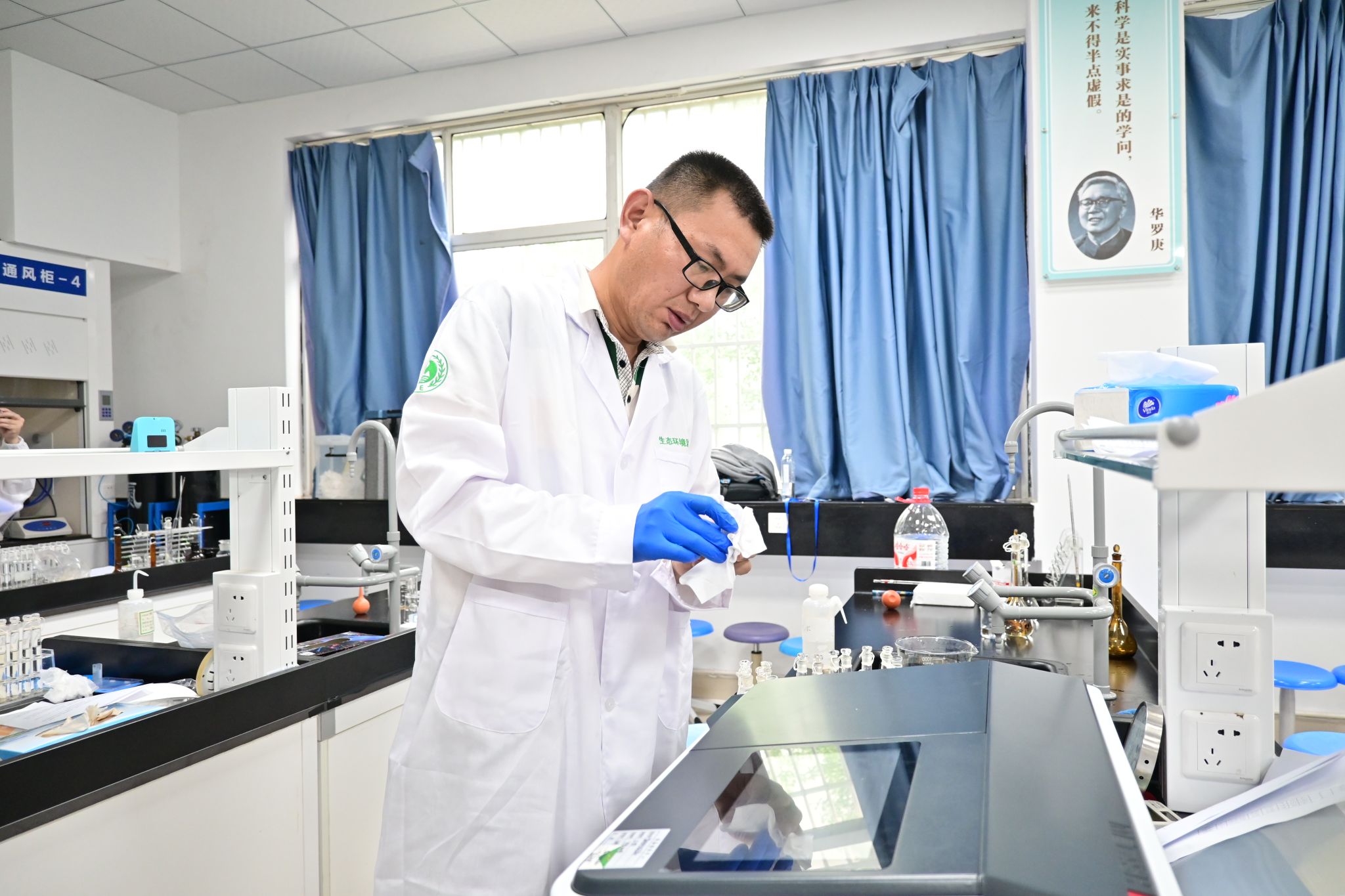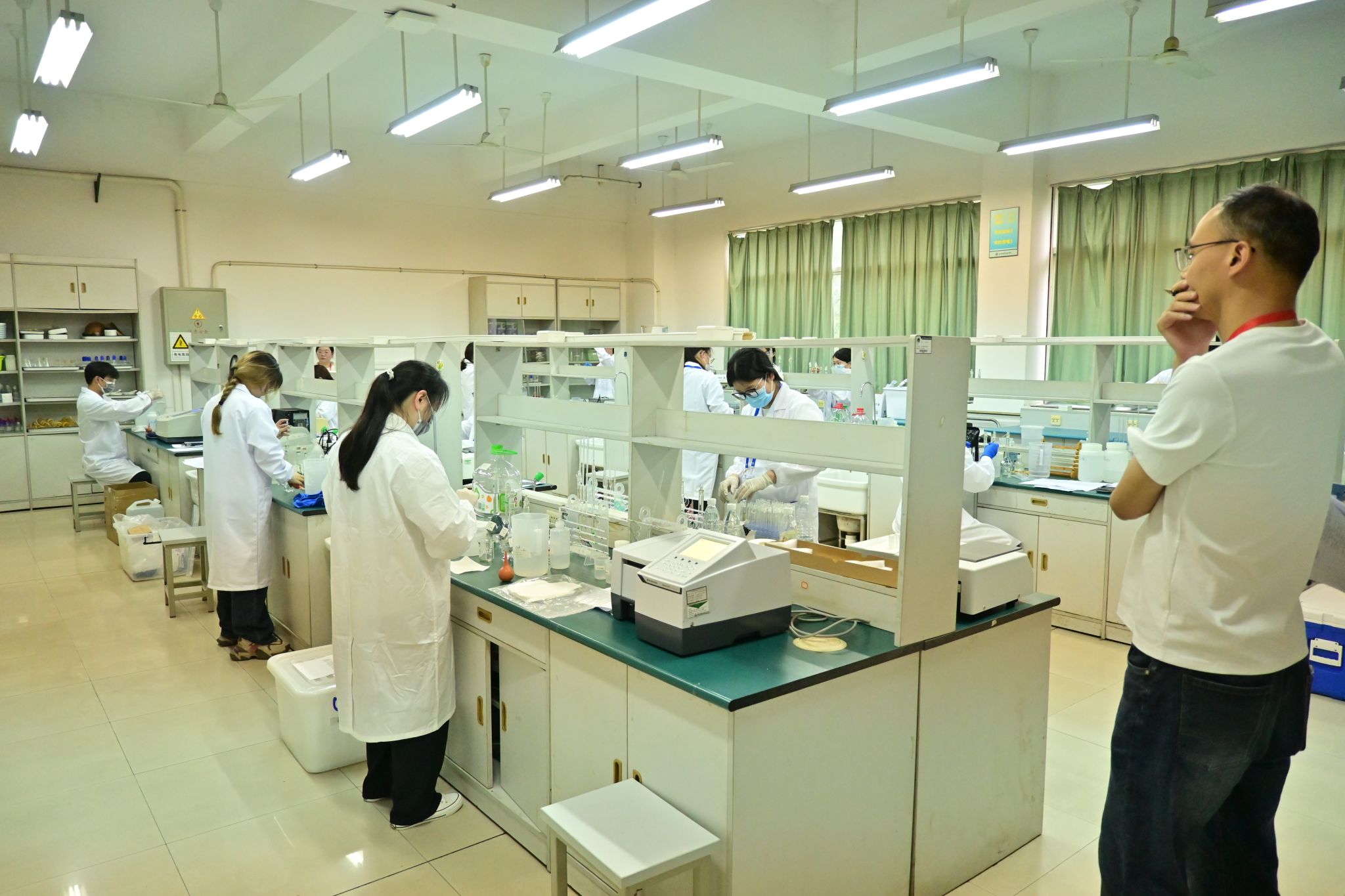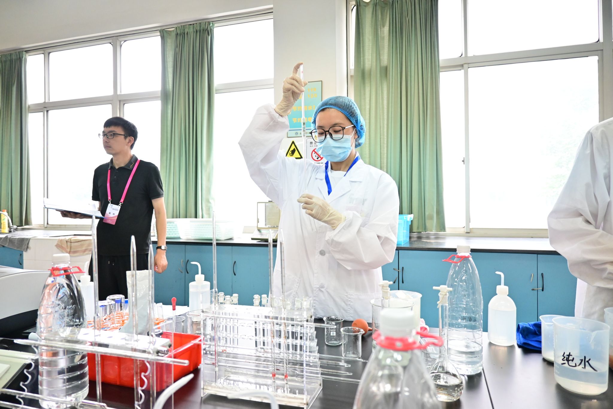 比賽中選手們身著工作服,在實(shí)驗(yàn)室緊張有序地進(jìn)行樣品測(cè)定,移液管精準(zhǔn)控量、比色皿反復(fù)校準(zhǔn),指尖操作如行云流水,裁判組全程記錄操作規(guī)范性,根據(jù)選手們的綜合表現(xiàn)評(píng)選出各組的個(gè)人與團(tuán)體獎(jiǎng)項(xiàng)。
