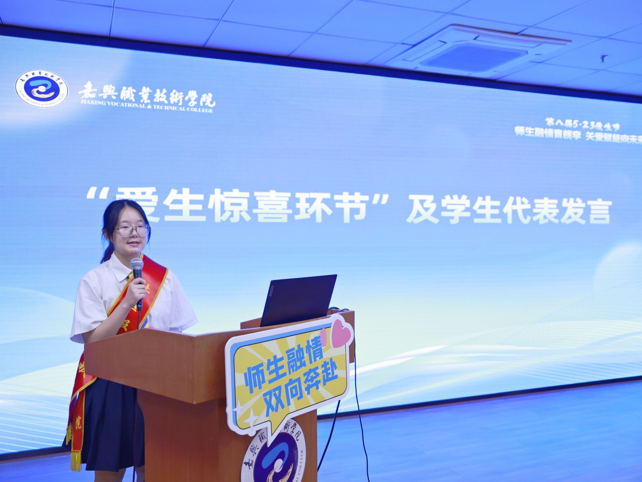 據(jù)悉,嘉職院自2018年設(shè)立“愛生節(jié)”,至今已是第八屆,8年來,學(xué)校舉辦了不同主題的、貼近學(xué)生、融入學(xué)生的愛生節(jié)系列活動,把“愛”的理念貫穿于“三全育人”、“五育并舉”全過程。近年來,學(xué)校愛生項目連續(xù)落地,新建、改造學(xué)生公寓;提高勤工助學(xué)資助標(biāo)準(zhǔn),不斷創(chuàng)新推出勤工助學(xué)崗位,豐富拓展各類幫困補(bǔ)助。一系列學(xué)生喜聞樂見的活動的舉辦,在校園里營造了愛生如子的良好氛圍。